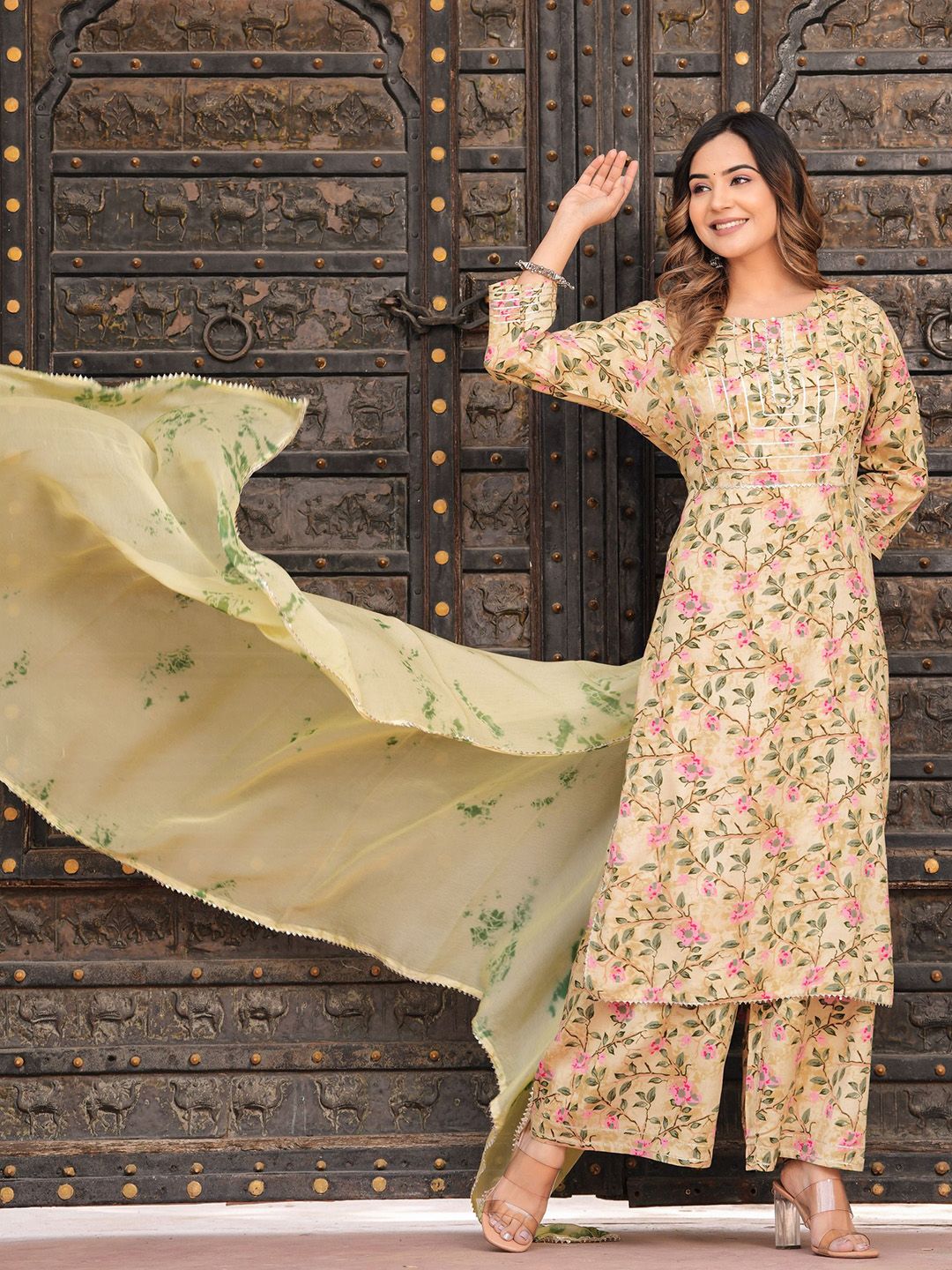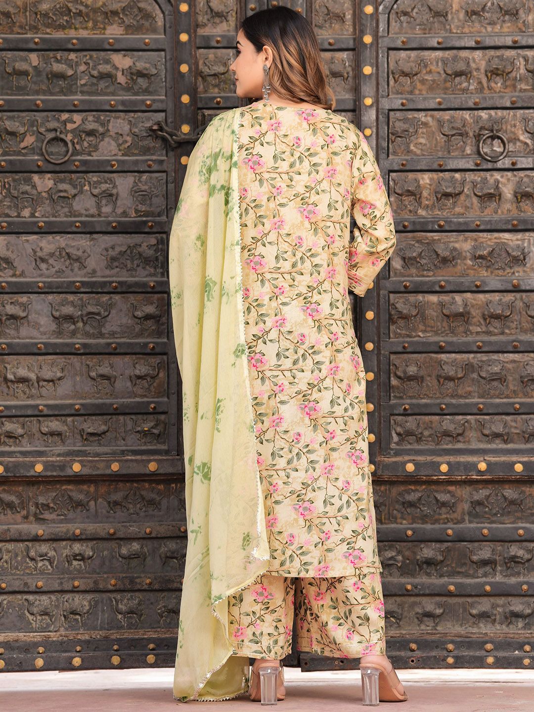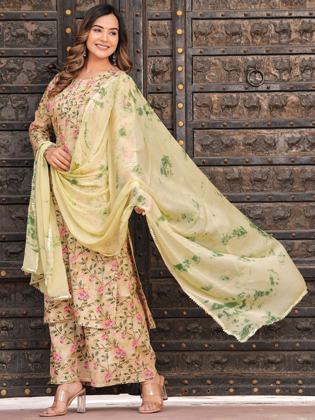 HERE&NOW Floral Printed Regular Kurta With Palazzos & Dupatta