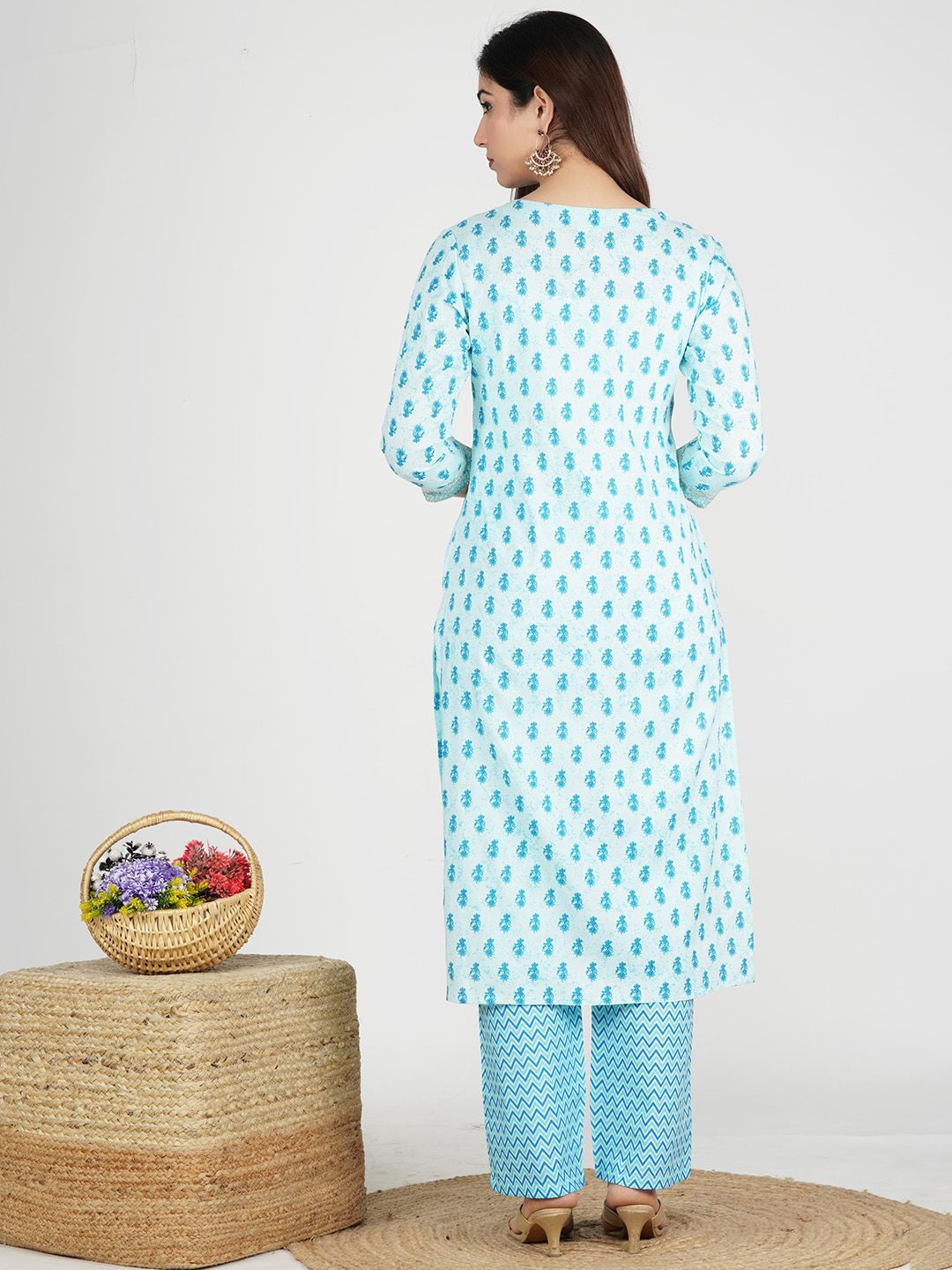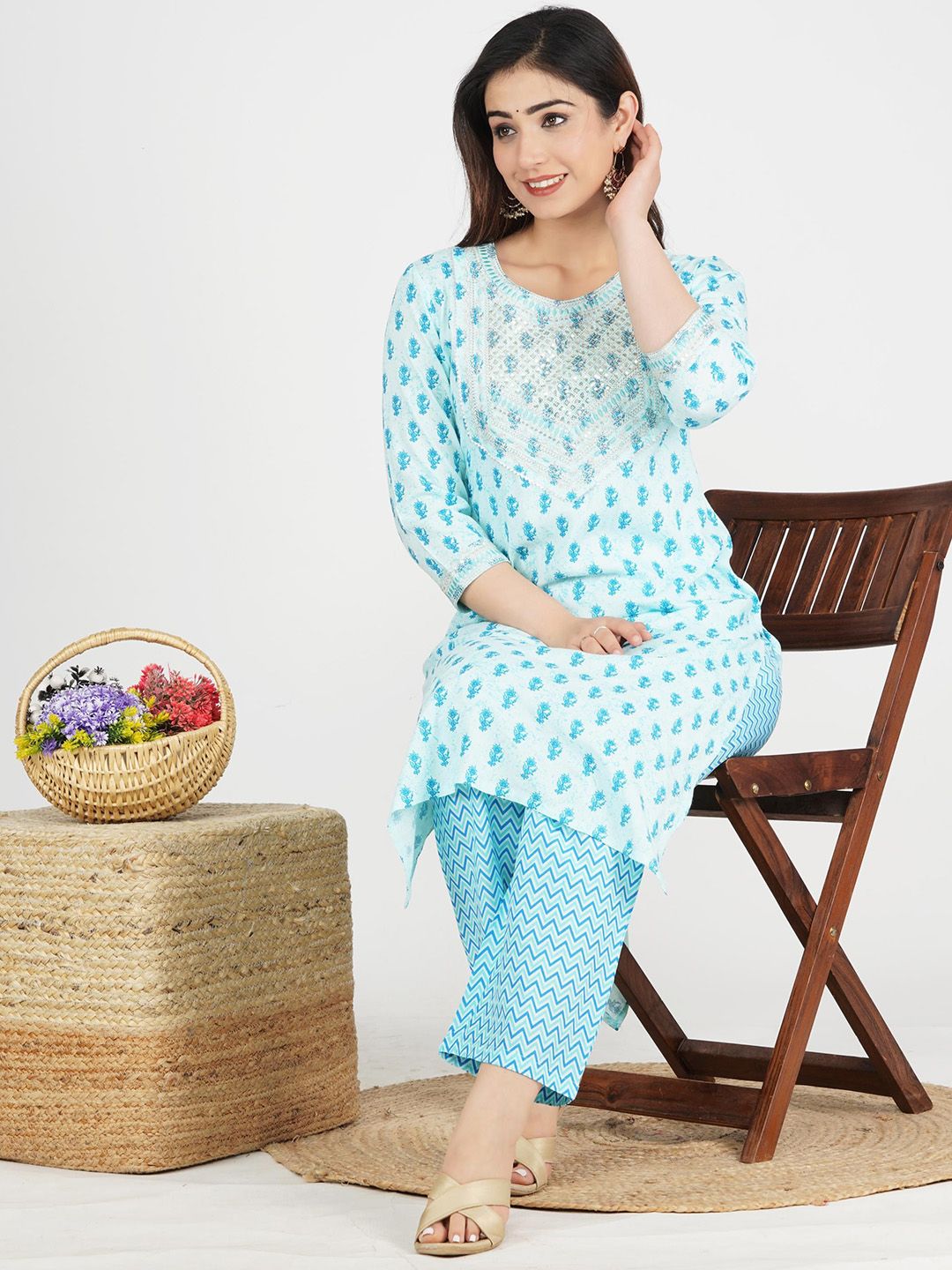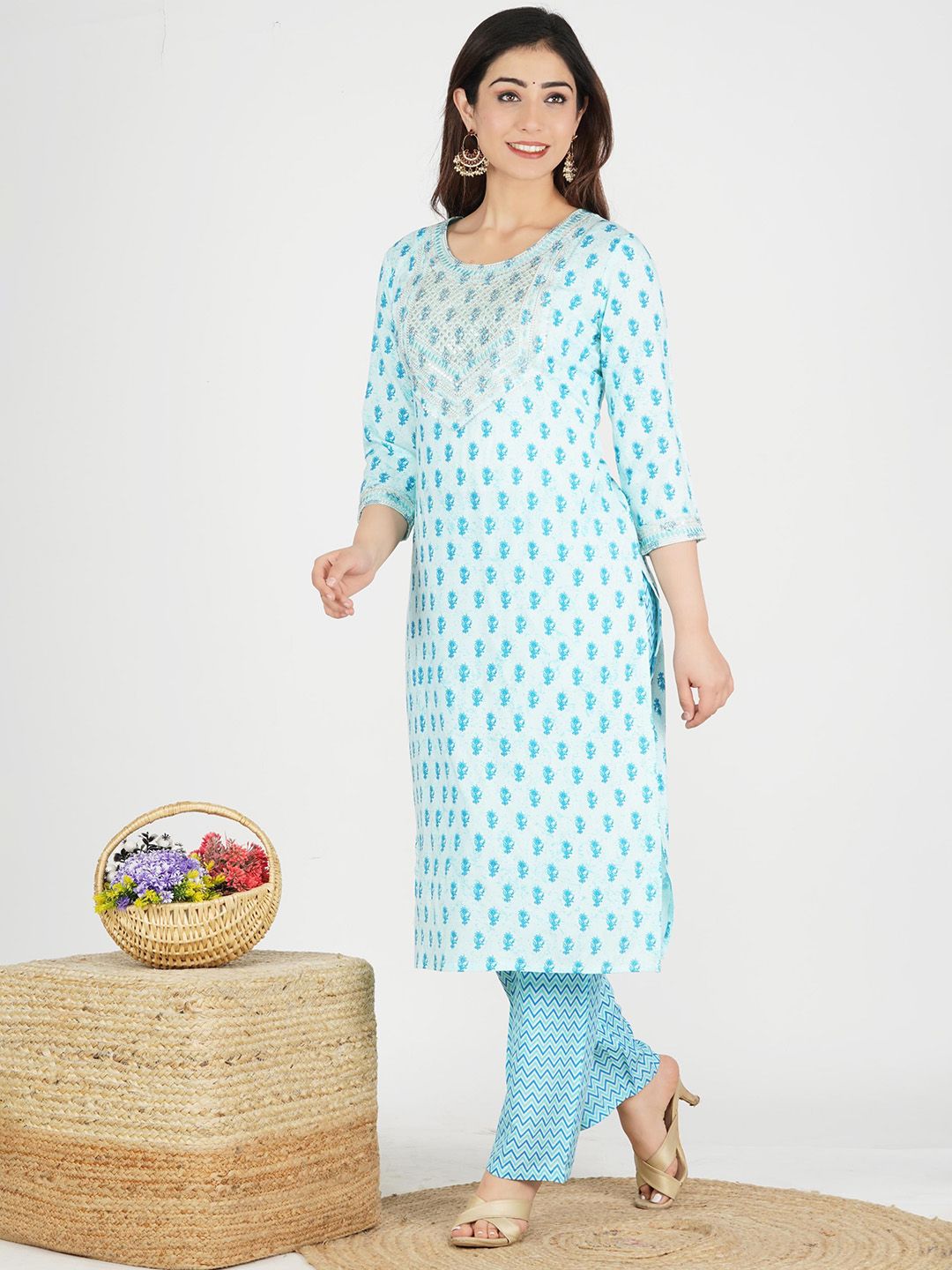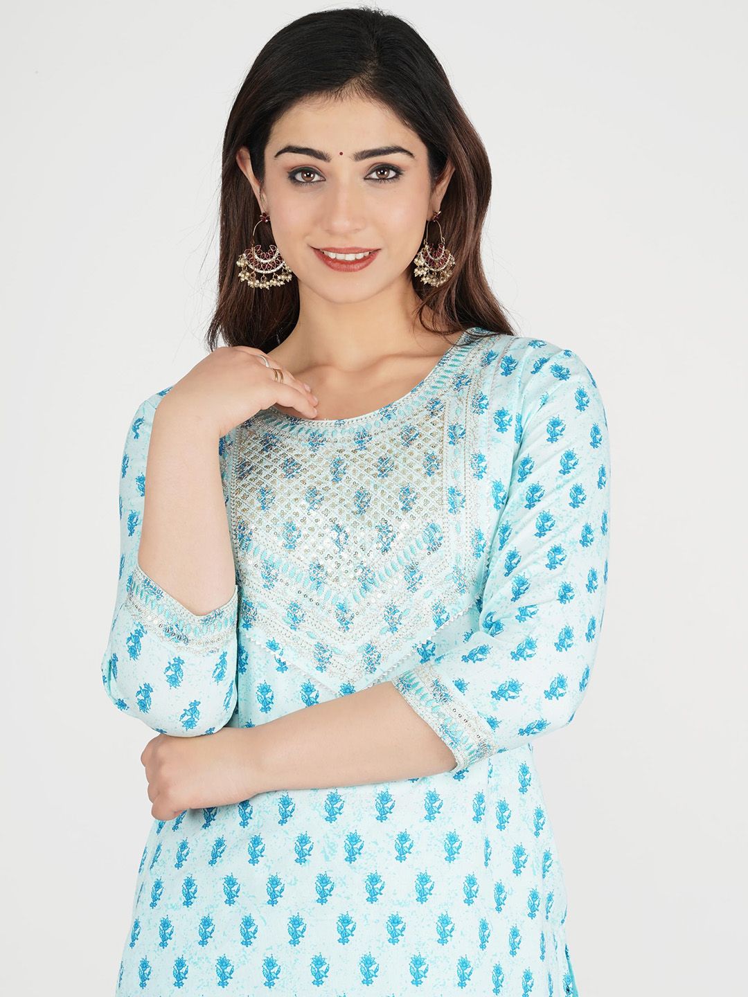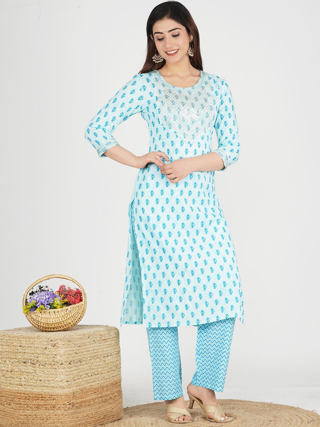 HERE&NOW Floral Printed Round Neck Sequinned Straight Kurta With Trouser