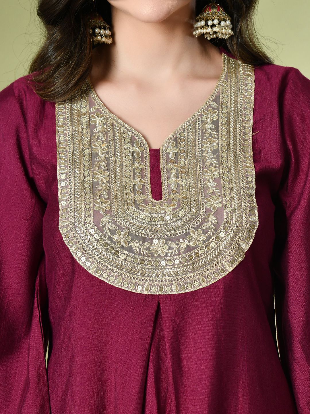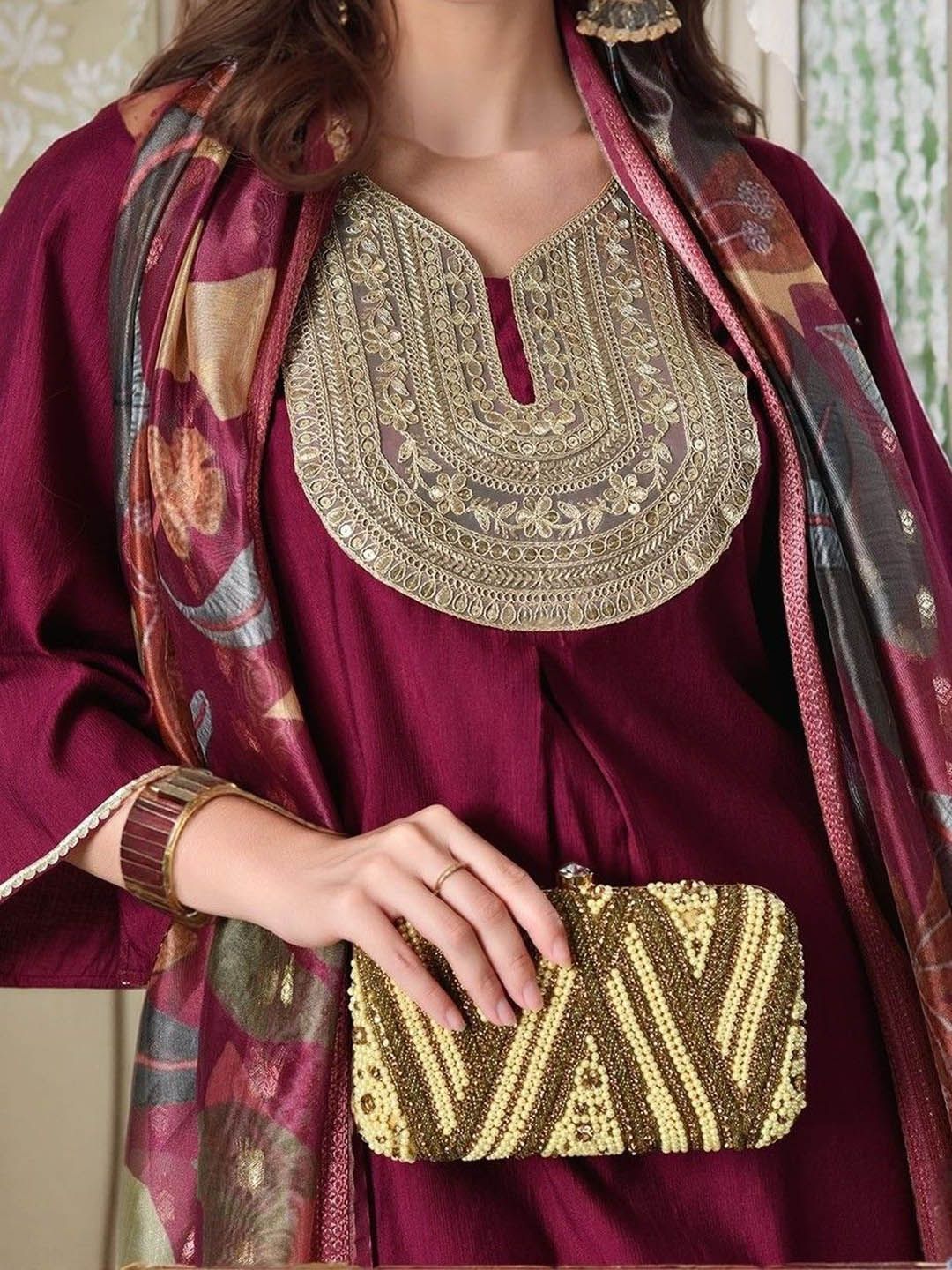 Buy this stylish HERE&NOW Floral Yoke Design Notch Neck Sequinned A-Line Kurta With Dhoti Pants And Dupatta at Marincart Nepal. This product offers great quality and value. Perfect for those looking for the latest trends in fashion. Get yours now at unbeatable prices.