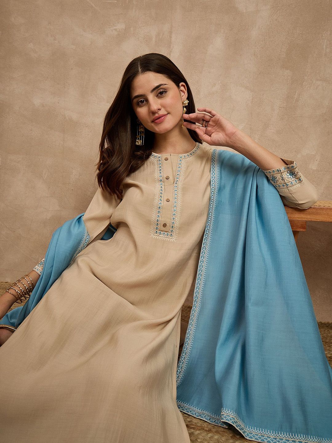 Buy this stylish HERE&NOW Floral Yoke Design Thread Work Straight Kurta With Trousers And Dupatta at Marincart Nepal. This product offers great quality and value. Perfect for those looking for the latest trends in fashion. Get yours now at unbeatable prices.