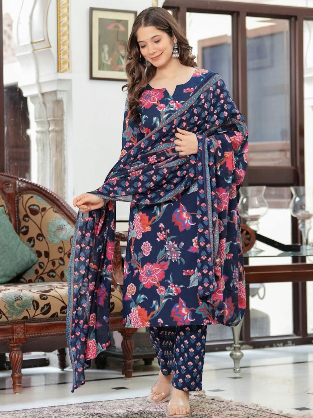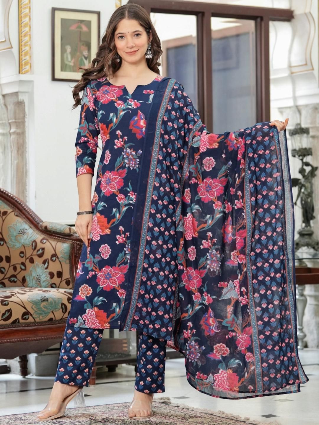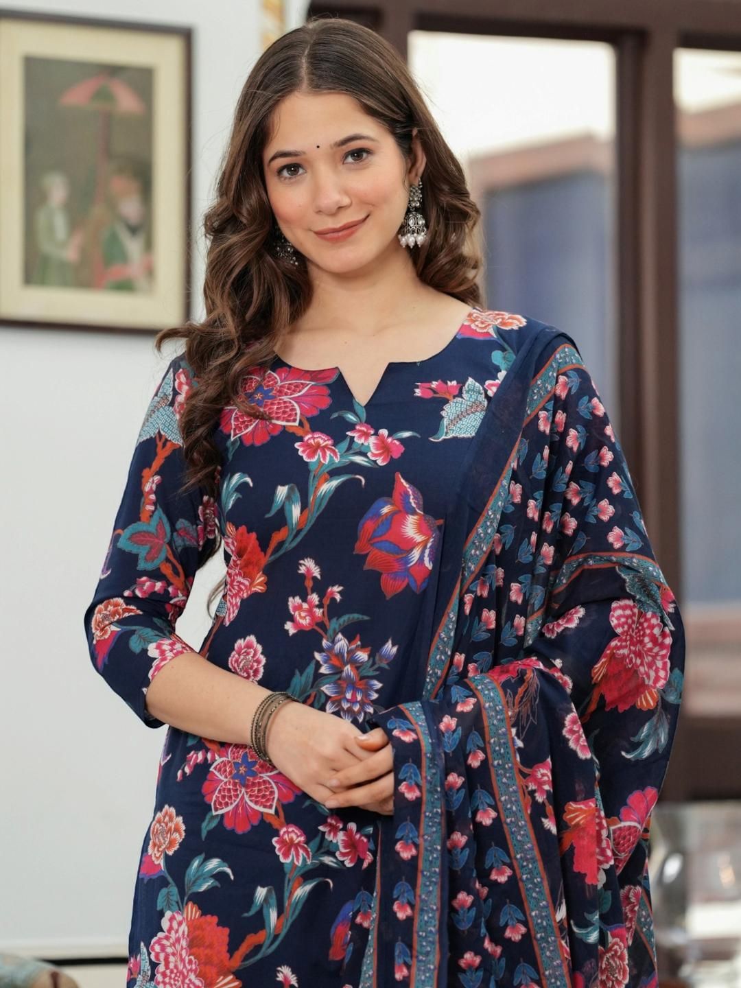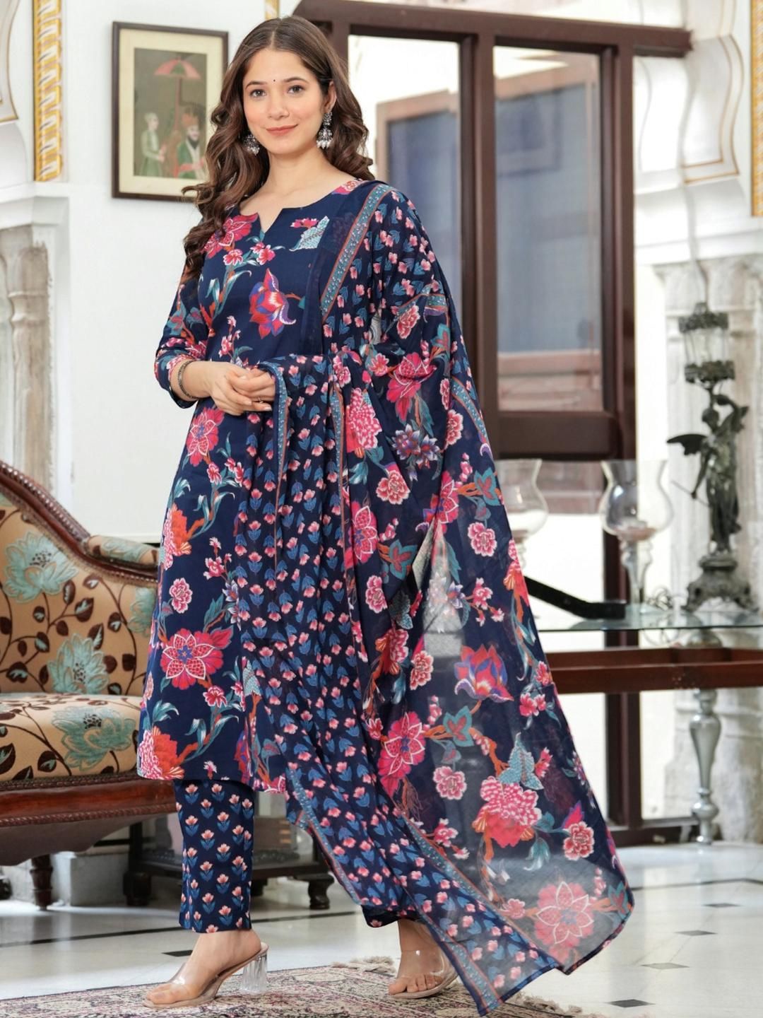 HERE&NOW Women Blue Pure Cotton Kurta Sets