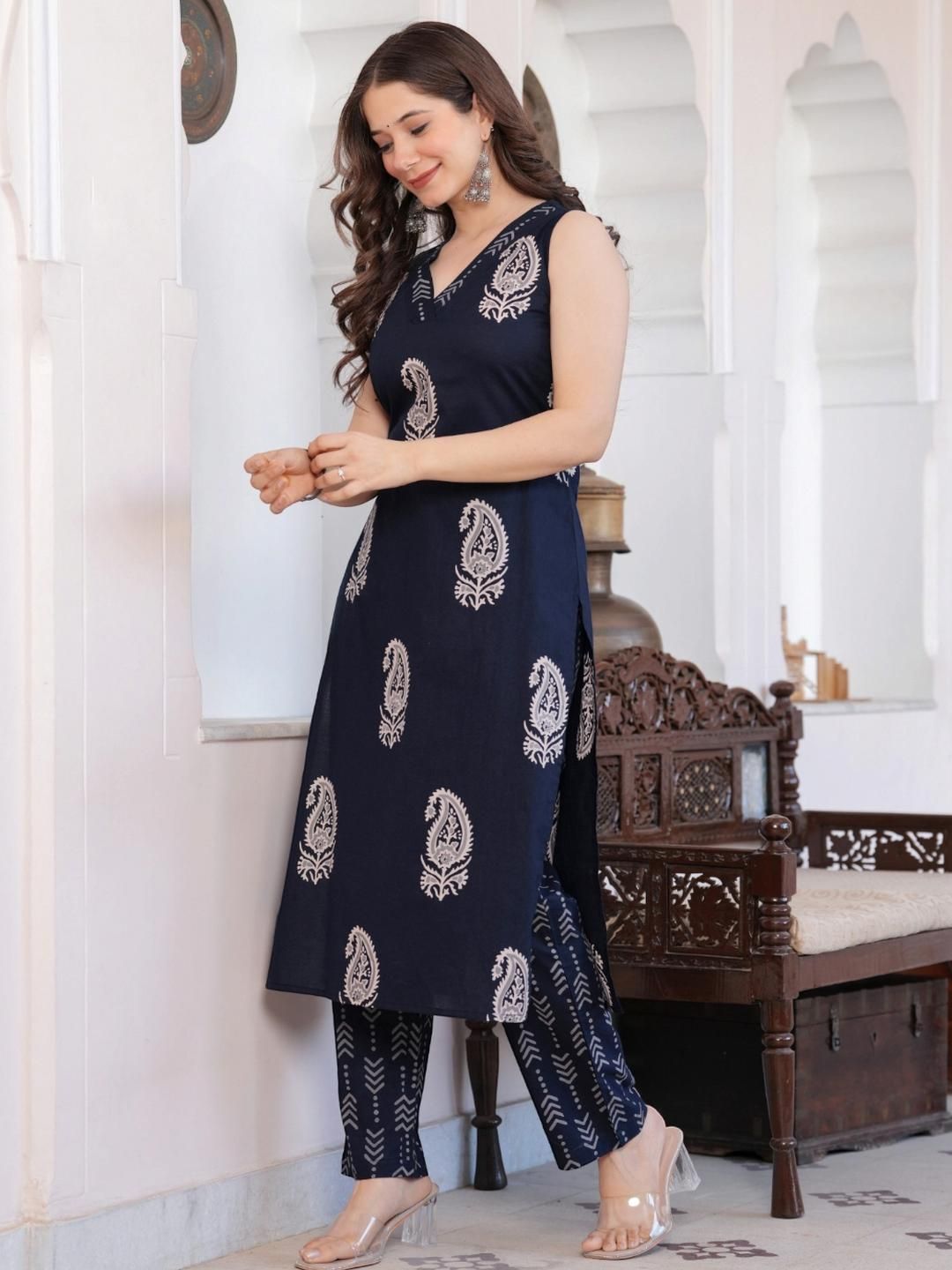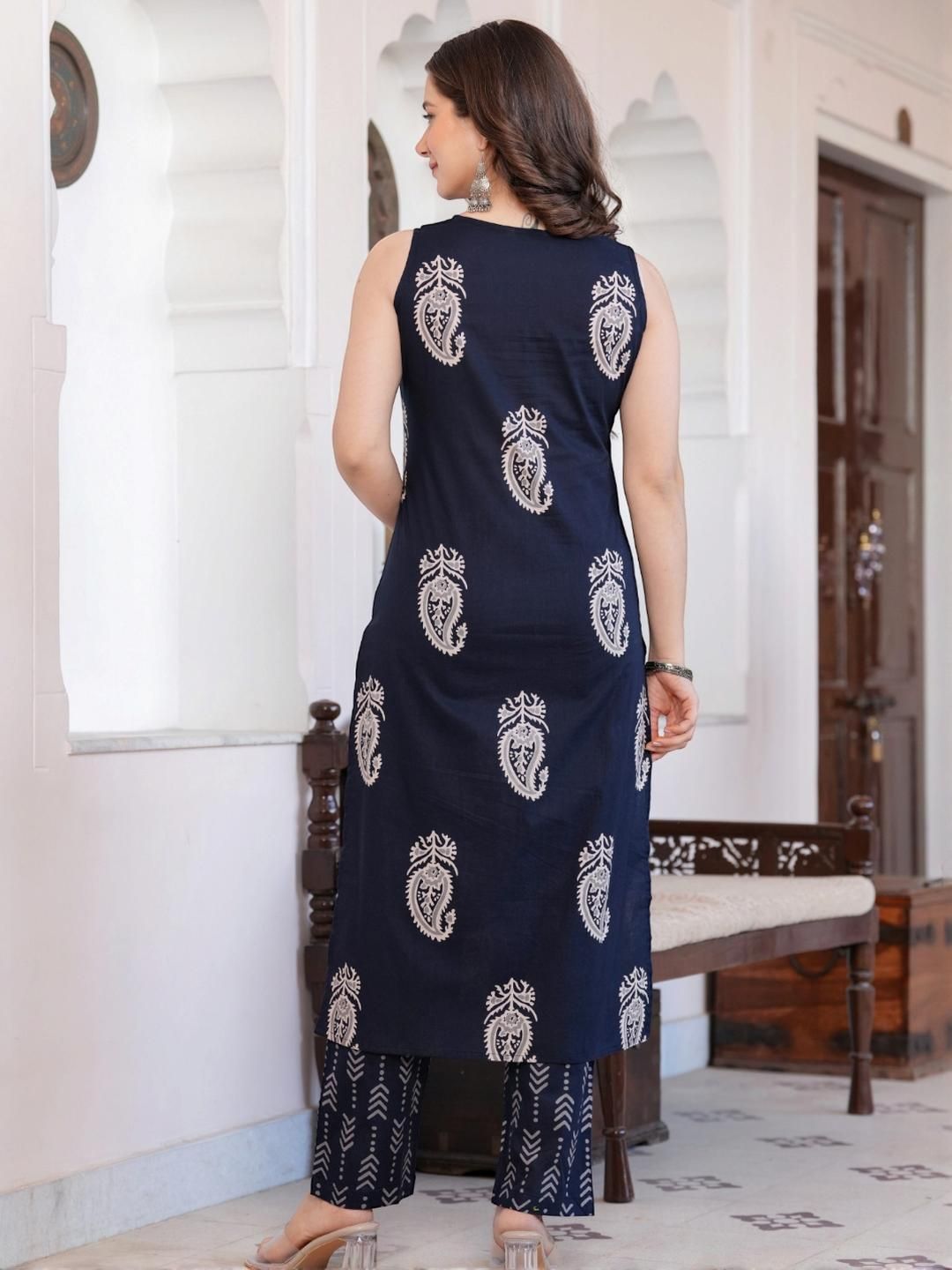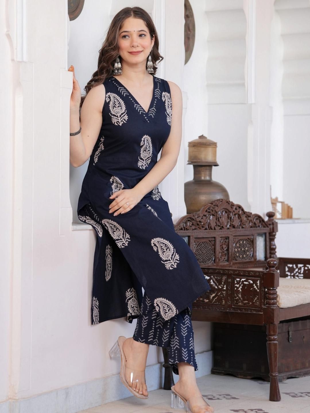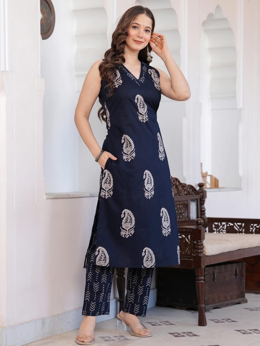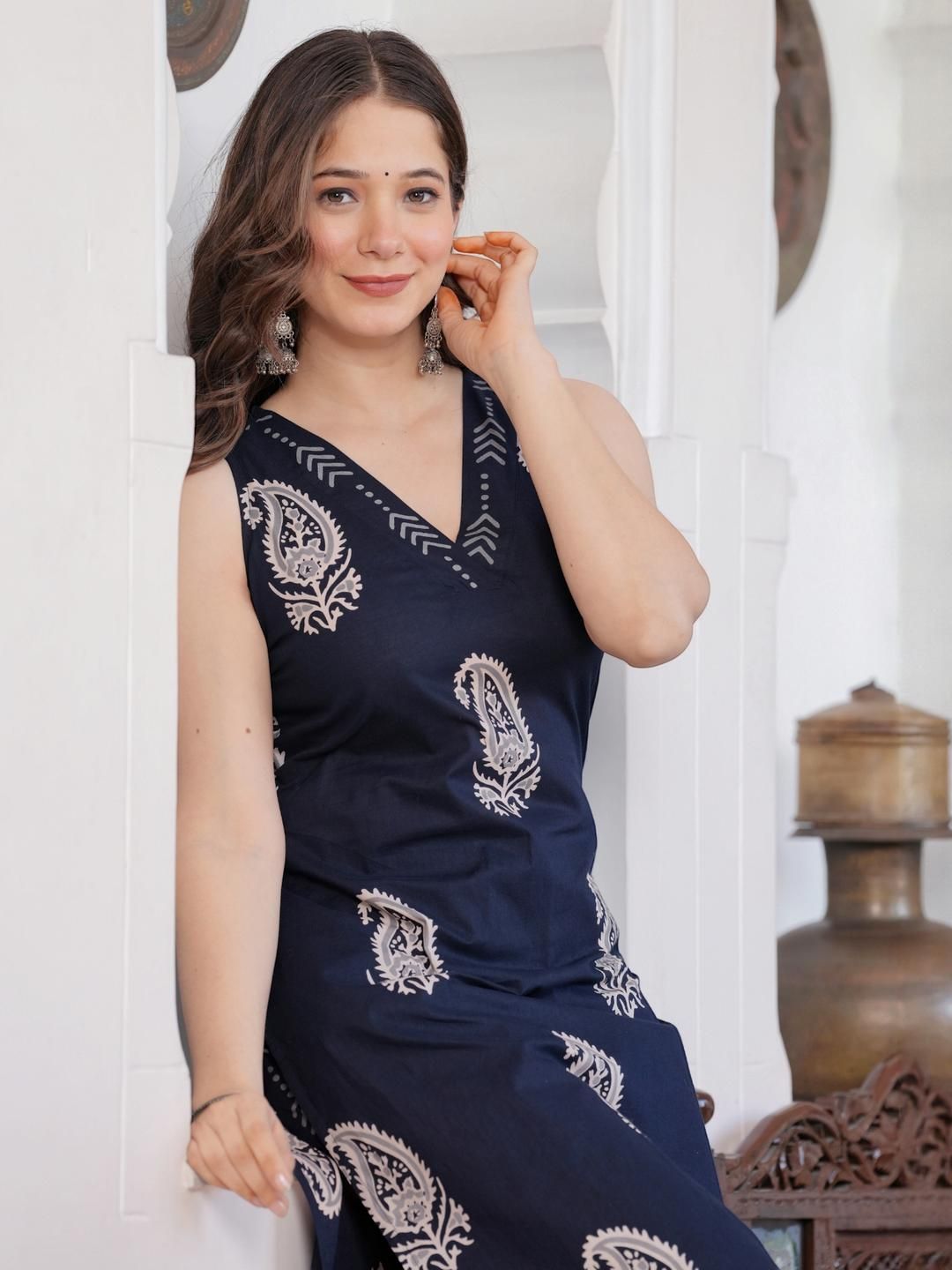 HERE&NOW Women Blue Pure Cotton Kurta Sets