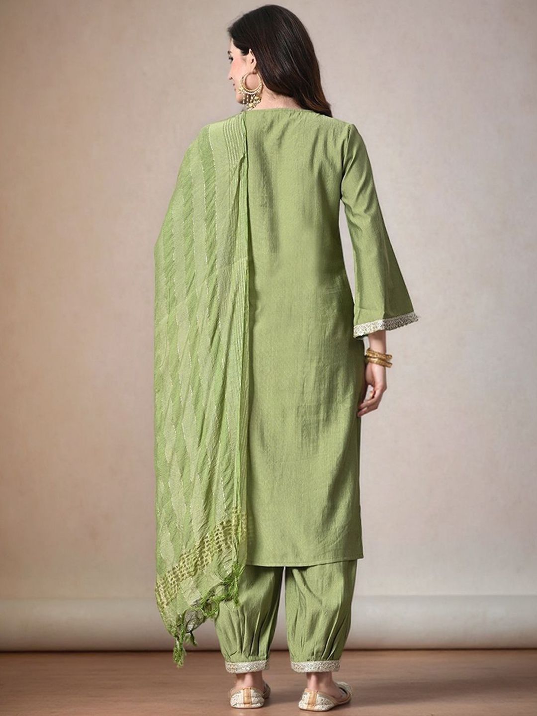 HERE&NOW Women Ethnic Motifs Embroidered Straight Kurta With Salwar & Dupatta