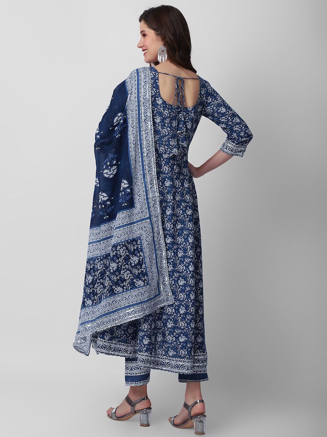 HERE&NOW Women Ethnic Motifs Printed Cotton Anarkali Kurta with Palazzo & Dupatta