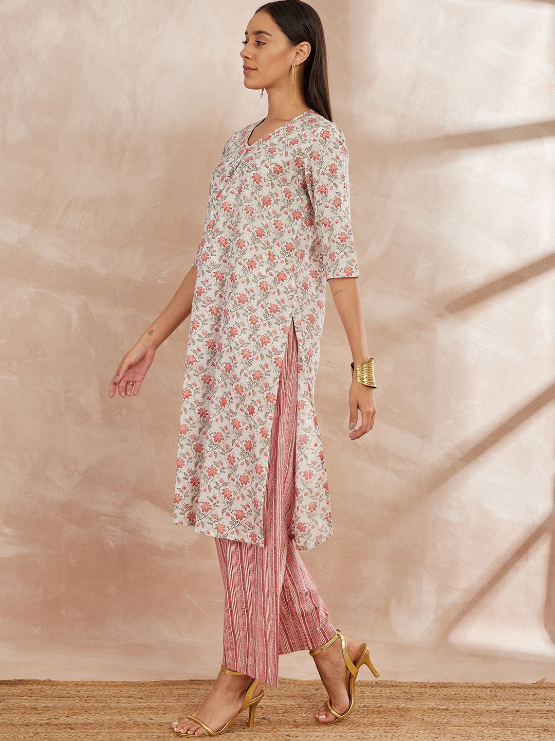 HERE&NOW Women Ethnic Motifs Printed Regular Sequinned Pure Cotton Kurta with Trousers