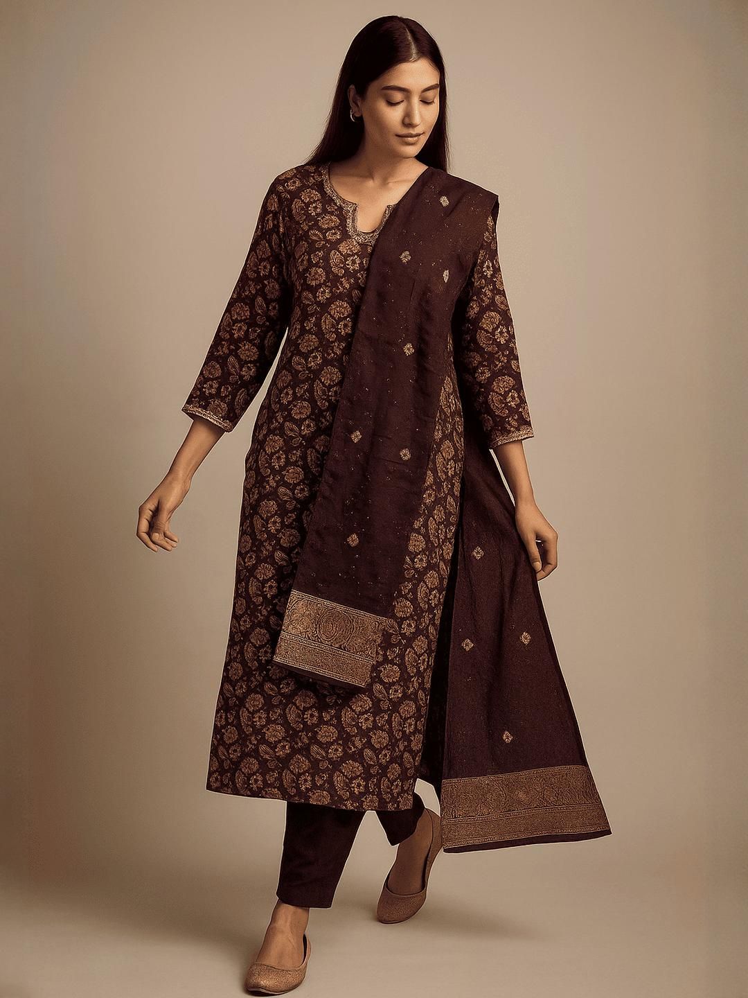 Buy this stylish HERE&NOW Women Floral Embroidered Regular Chanderi Silk Kurta With Trousers & Dupatta at Marincart Nepal. This product offers great quality and value. Perfect for those looking for the latest trends in fashion. Get yours now at unbeatable prices.