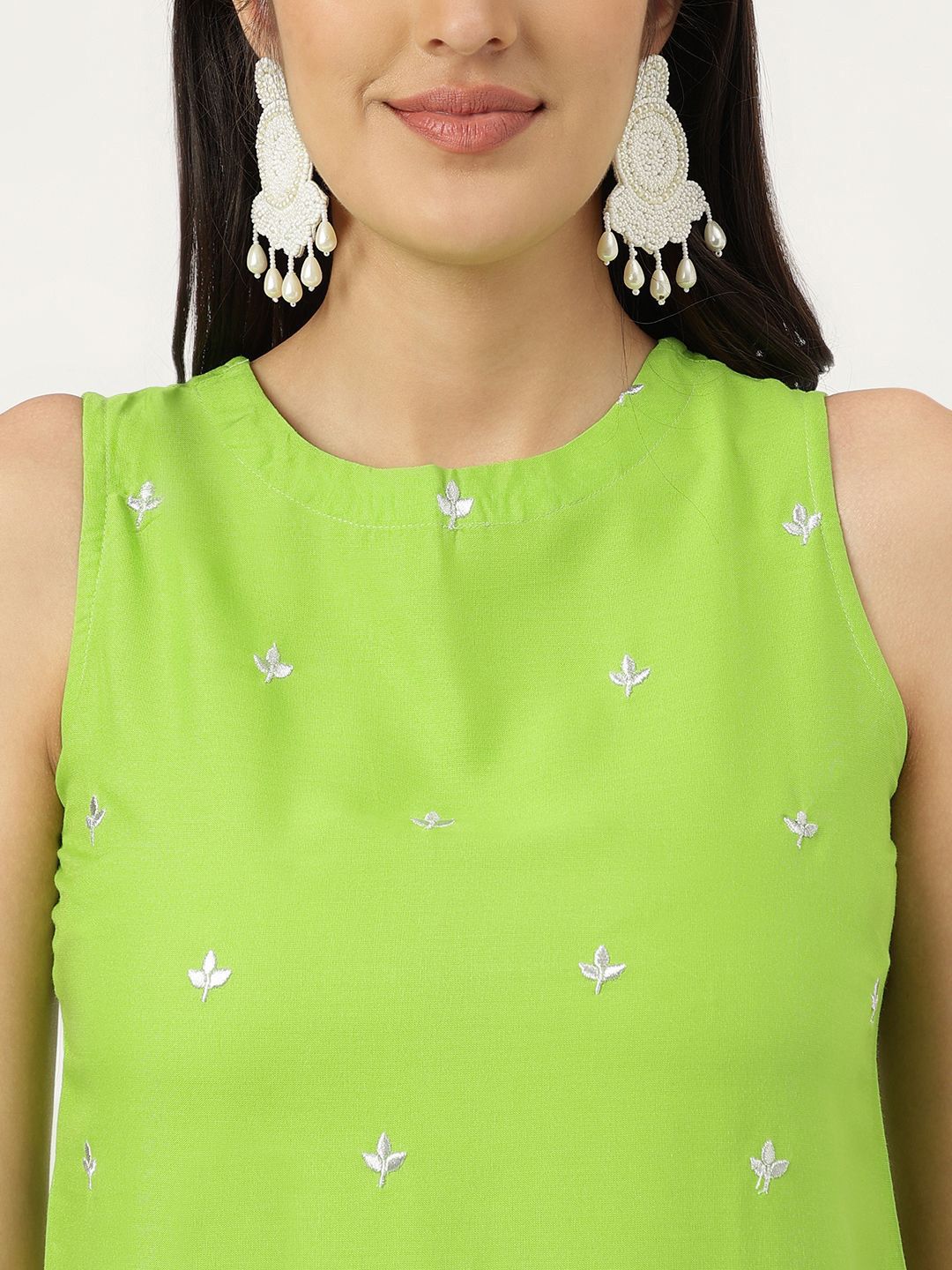 HERE&NOW Women Floral Embroidered Regular Thread Work Kurta with Palazzos