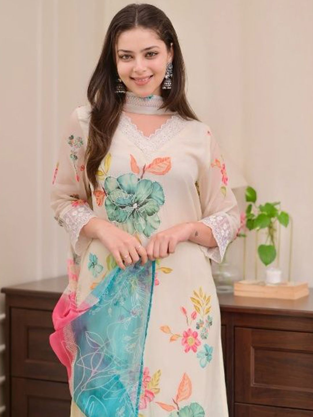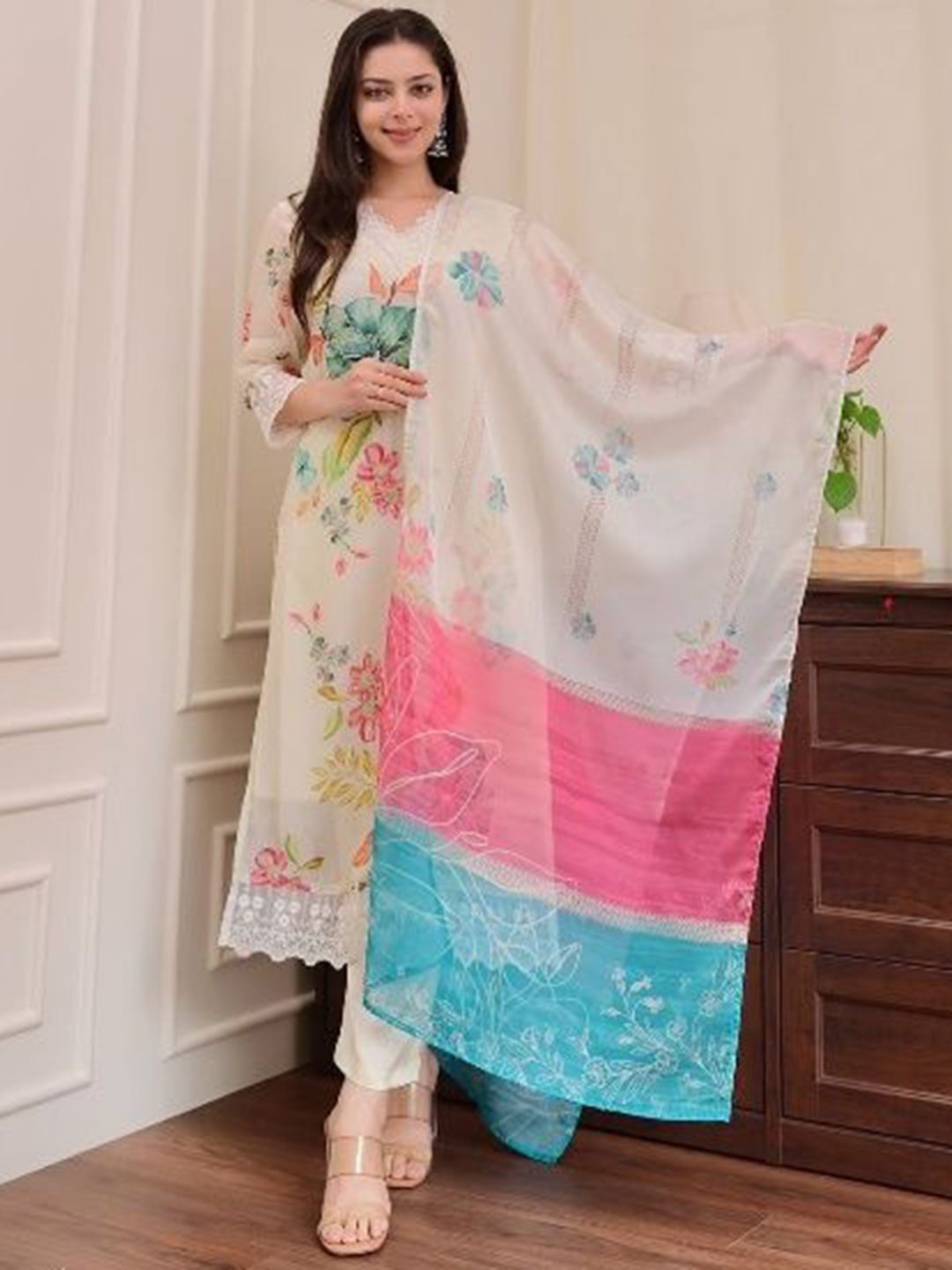 HERE&NOW Women Floral Printed A-Line Kurta with Salwar & Dupatta