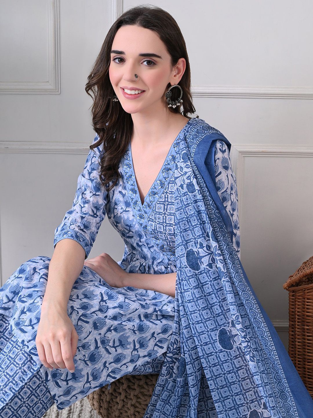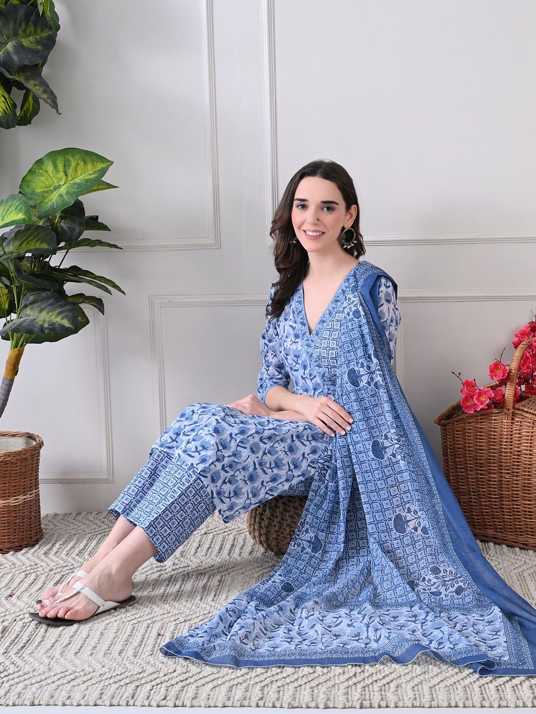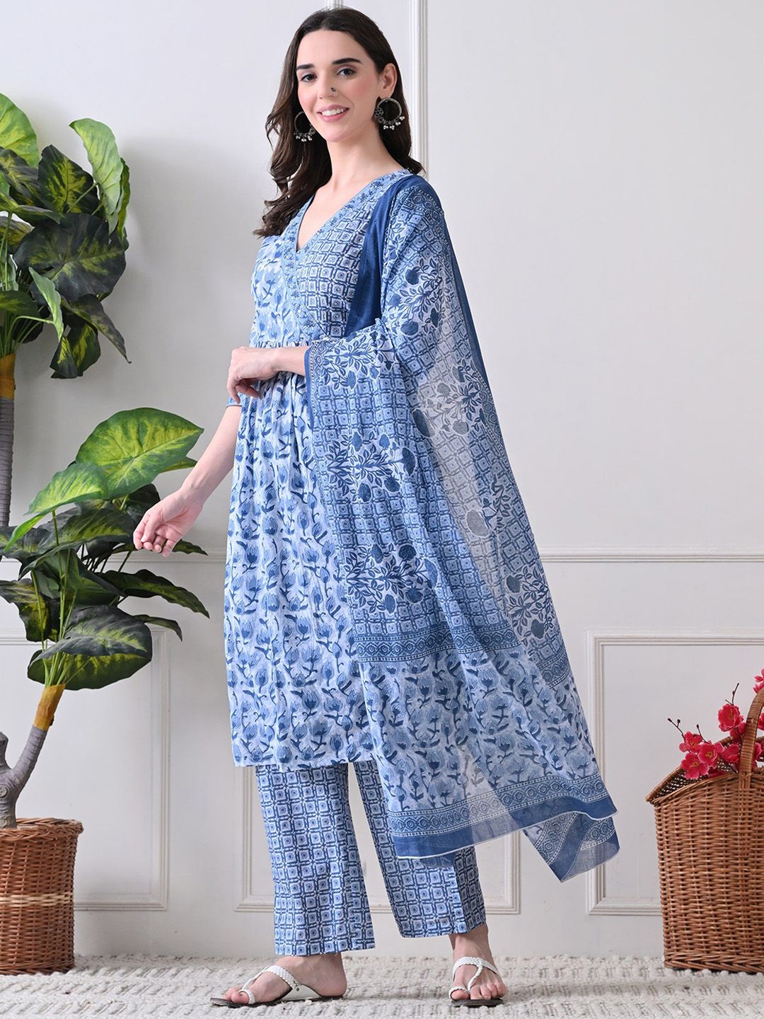 Buy this stylish HERE&NOW Women Floral Printed Cotton A-Line Kurta with Trousers & Dupatta at Marincart Nepal. This product offers great quality and value. Perfect for those looking for the latest trends in fashion. Get yours now at unbeatable prices.