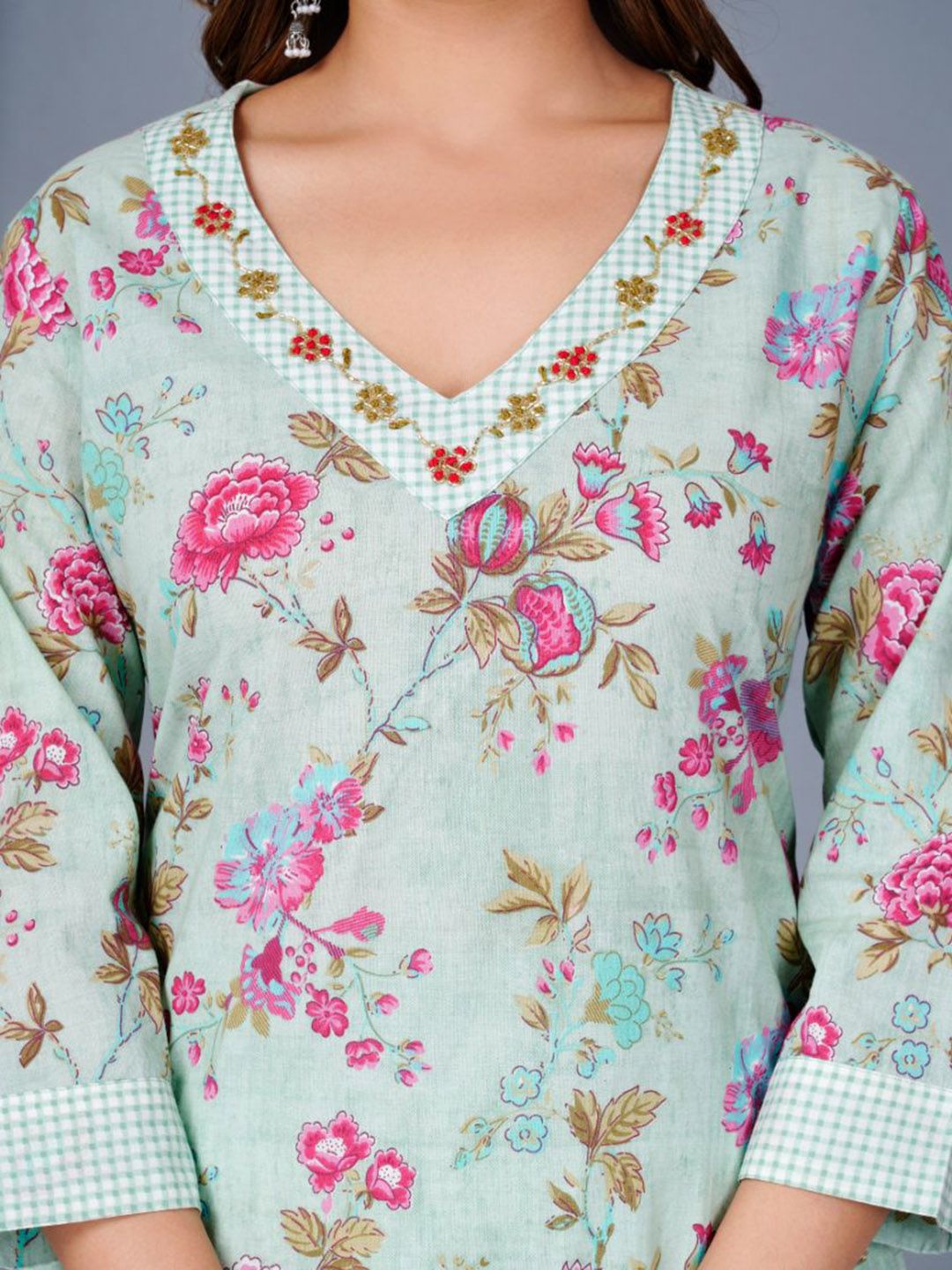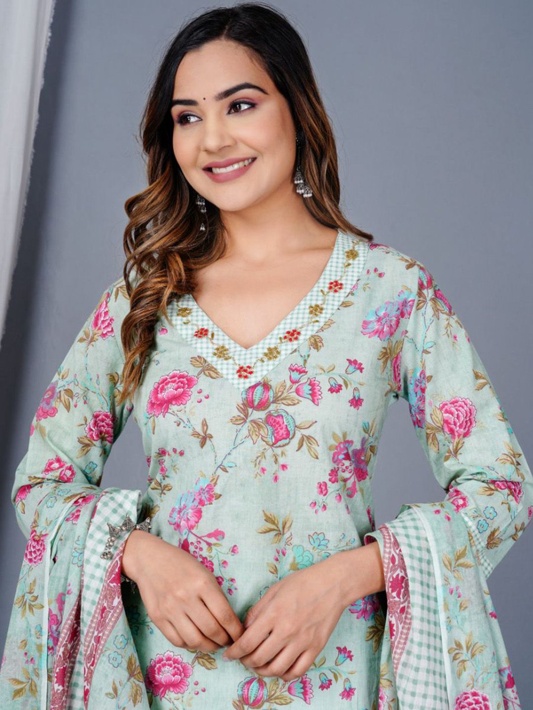 HERE&NOW Women Floral Printed Cotton Kurta with Dhoti Pant & Dupatta
