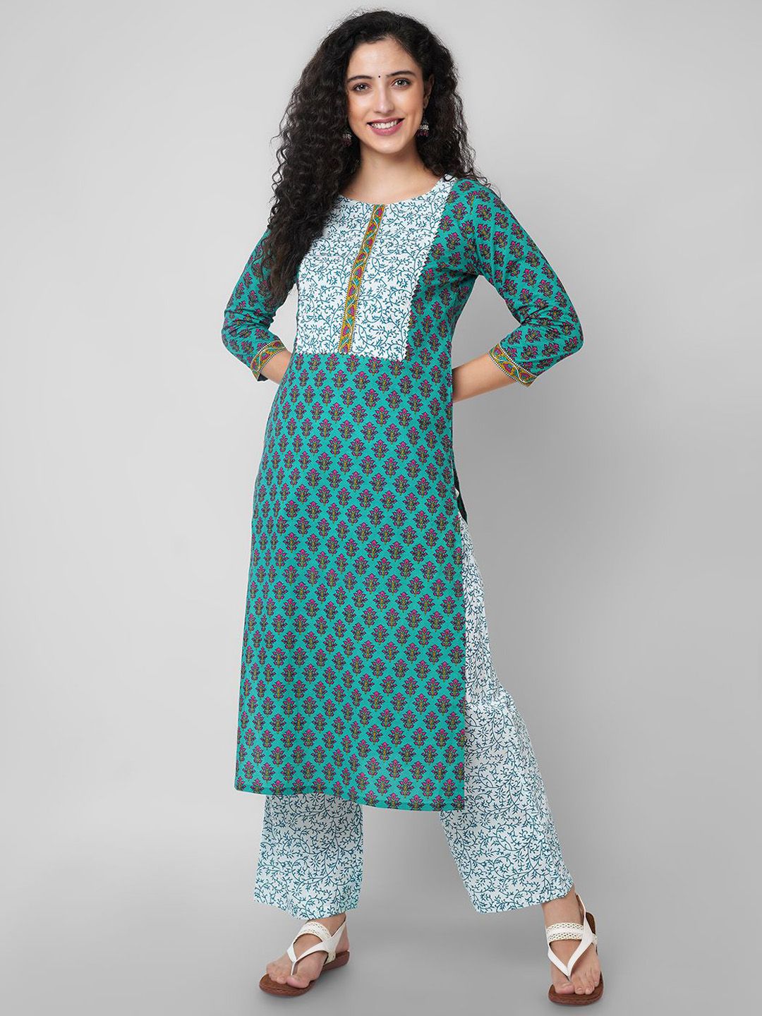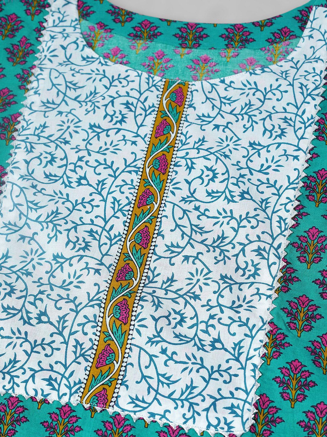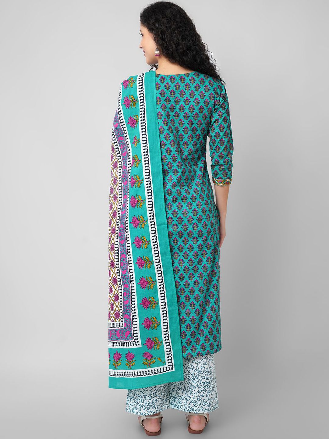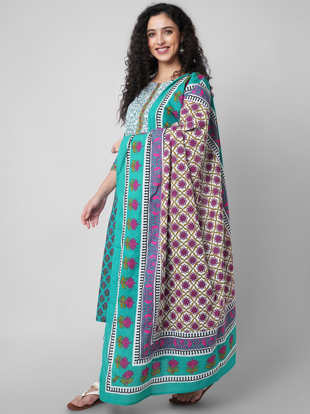 HERE&NOW Women Floral Printed Cotton Kurta with Palazzo & Dupatta
