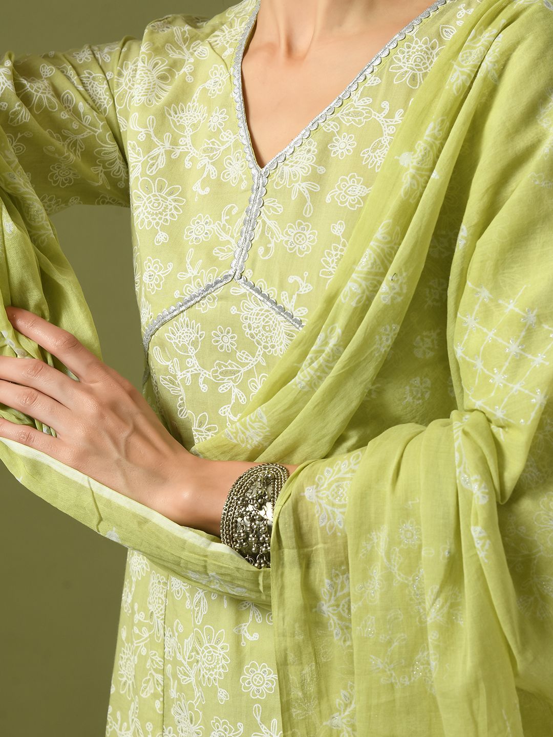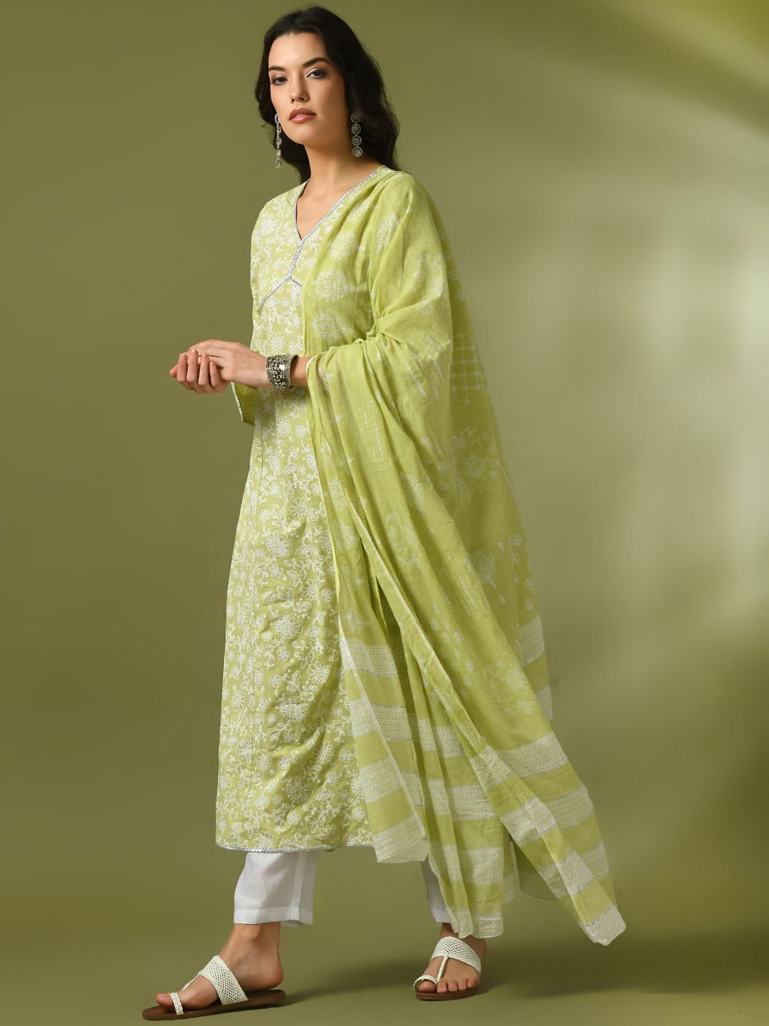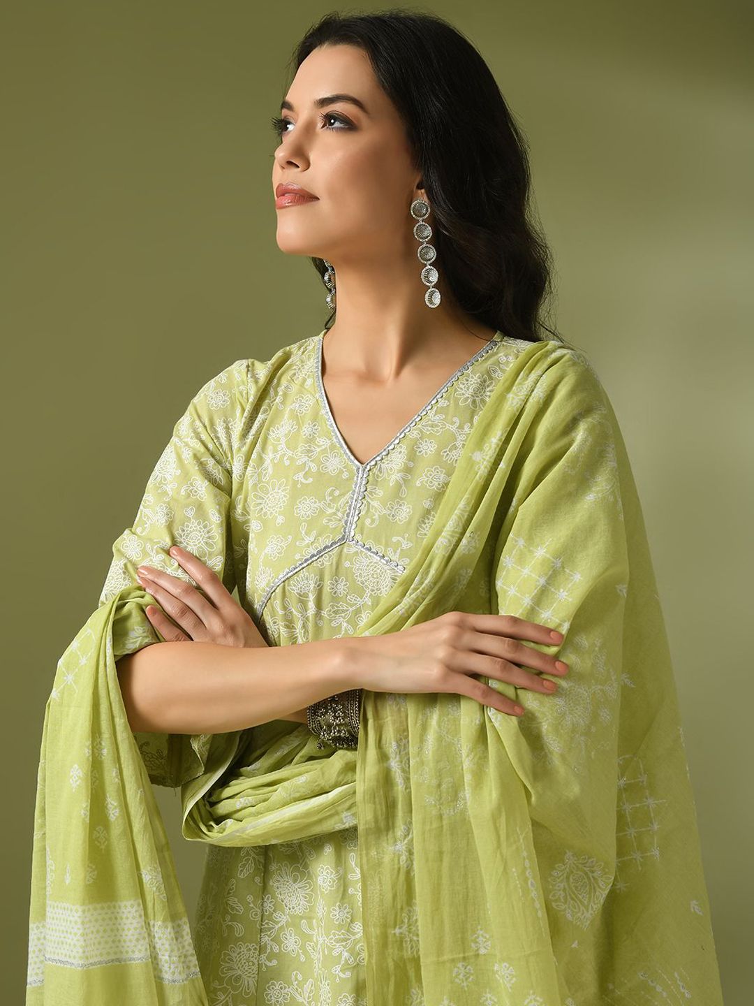 HERE&NOW Women Floral Printed Cotton Kurta with Trousers & Dupatta