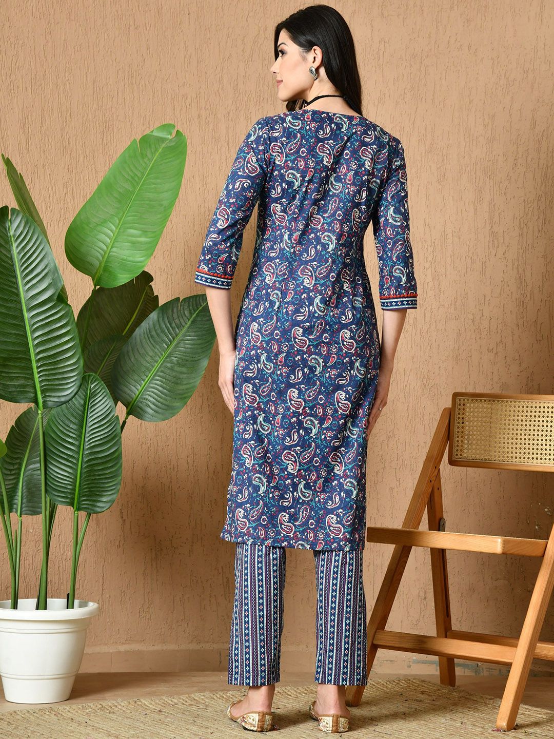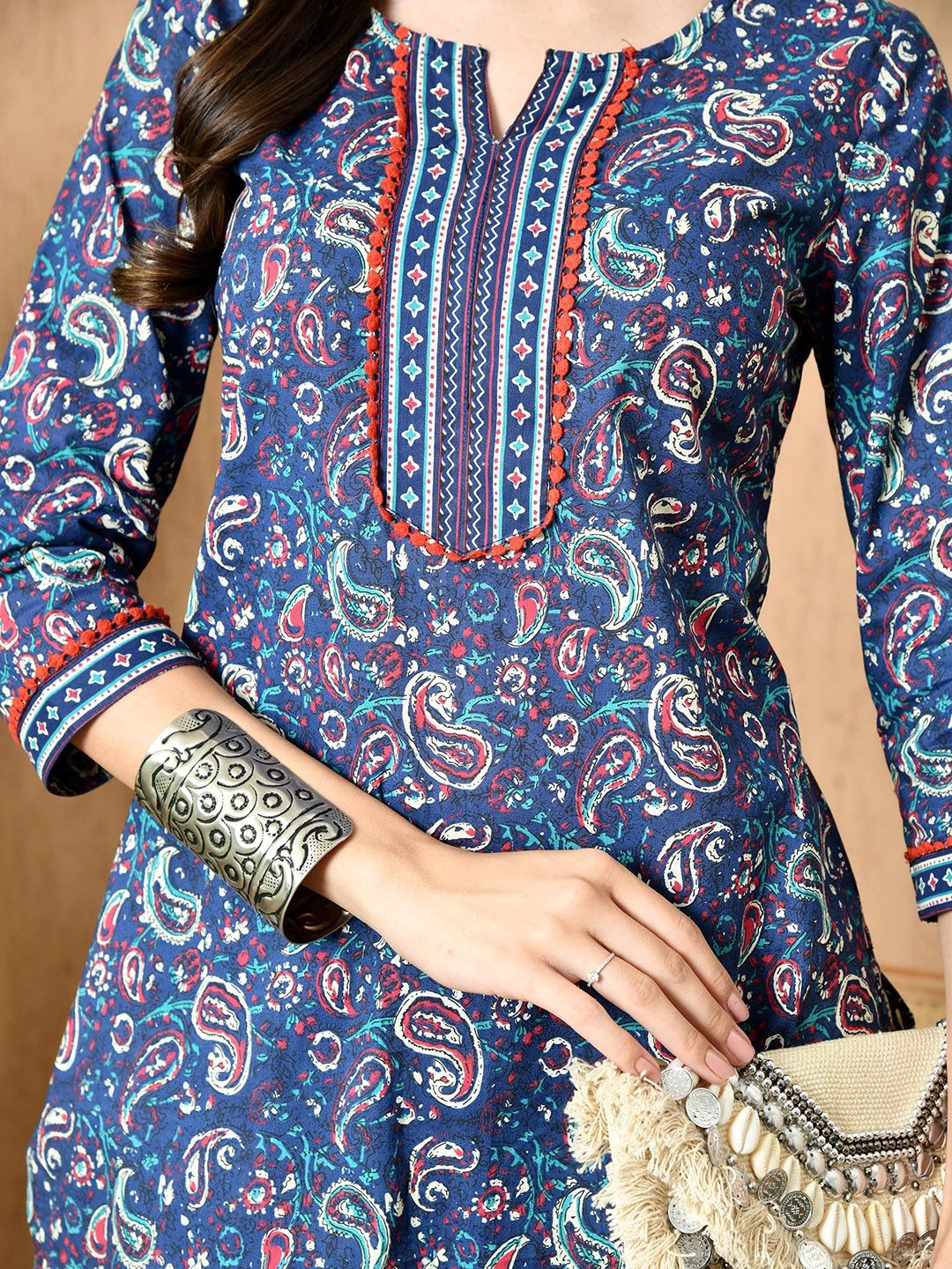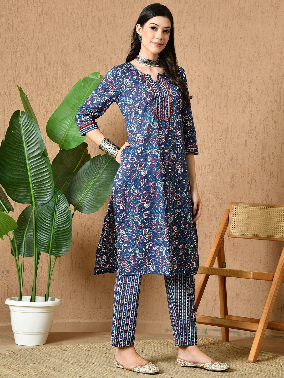 HERE&NOW Women Floral Printed Cotton Kurta with Trousers