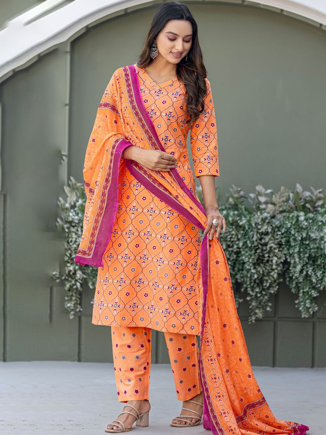 HERE&NOW Women Floral Printed Kurta with Trousers & Dupatta