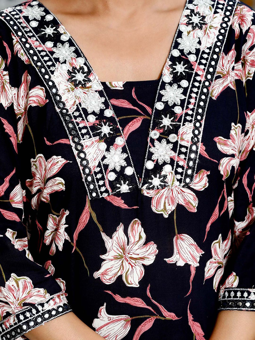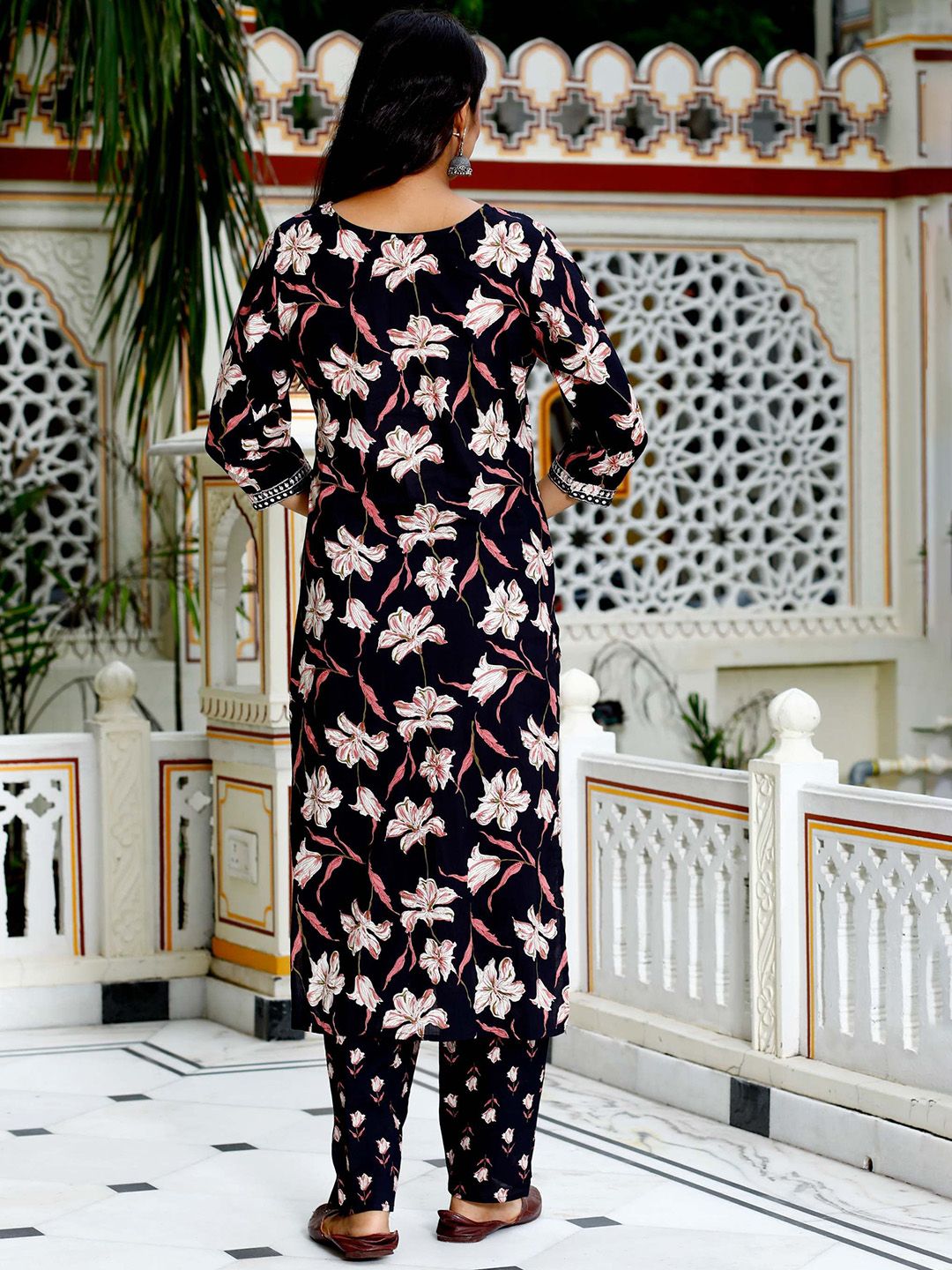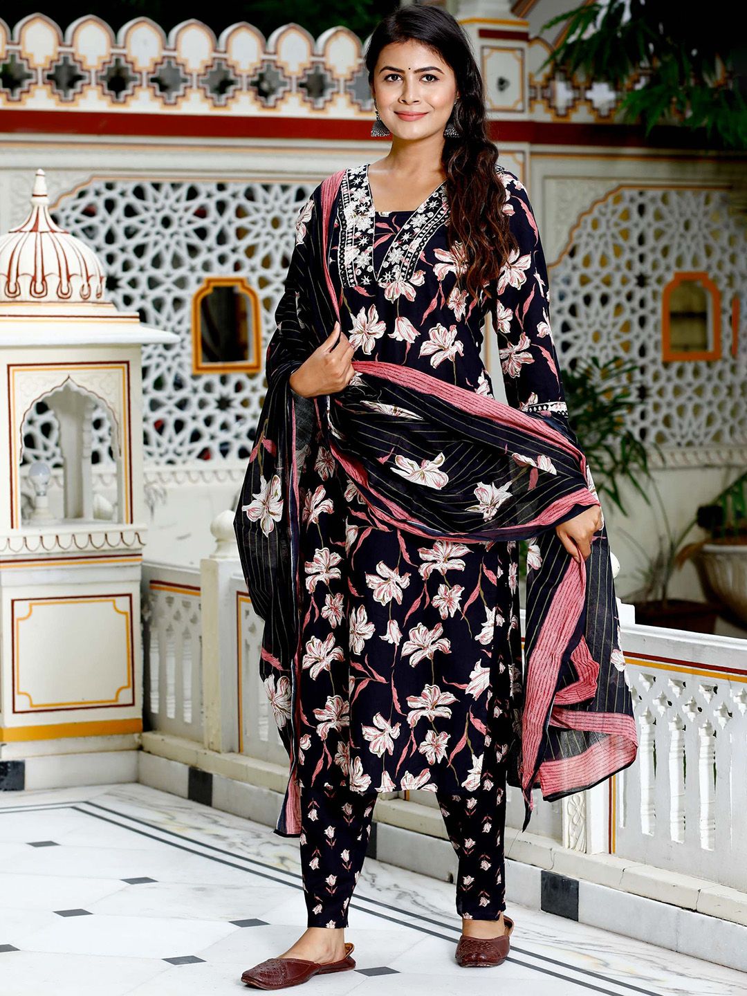 HERE&NOW Women Floral Printed Pure Cotton Kurta & Trousers With Dupatta
