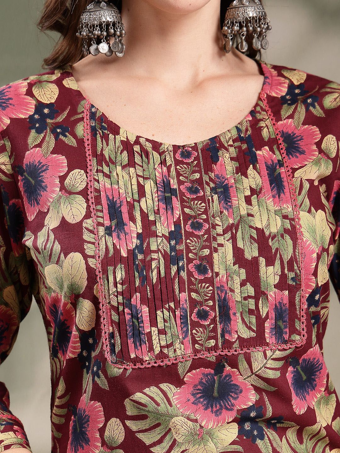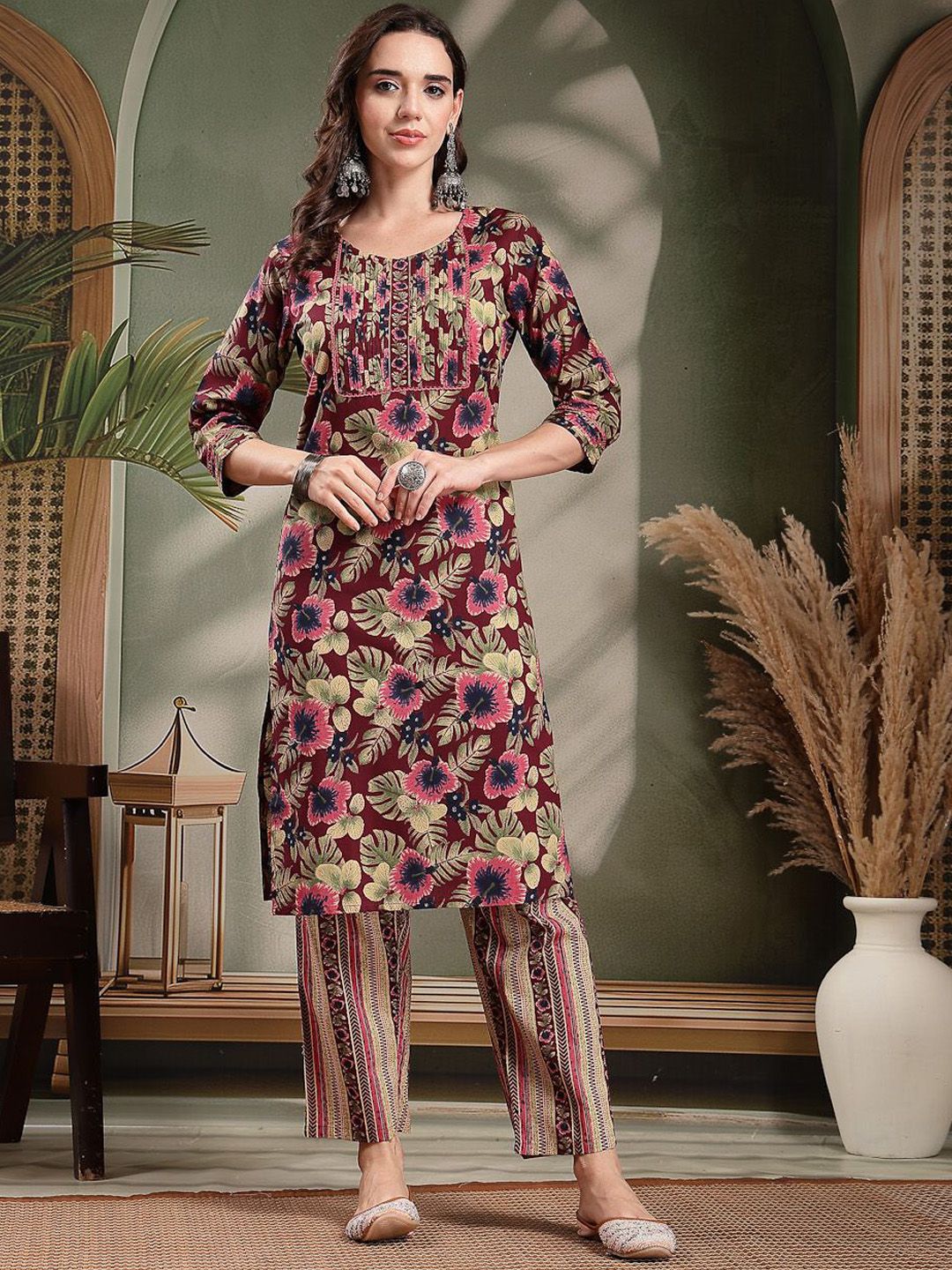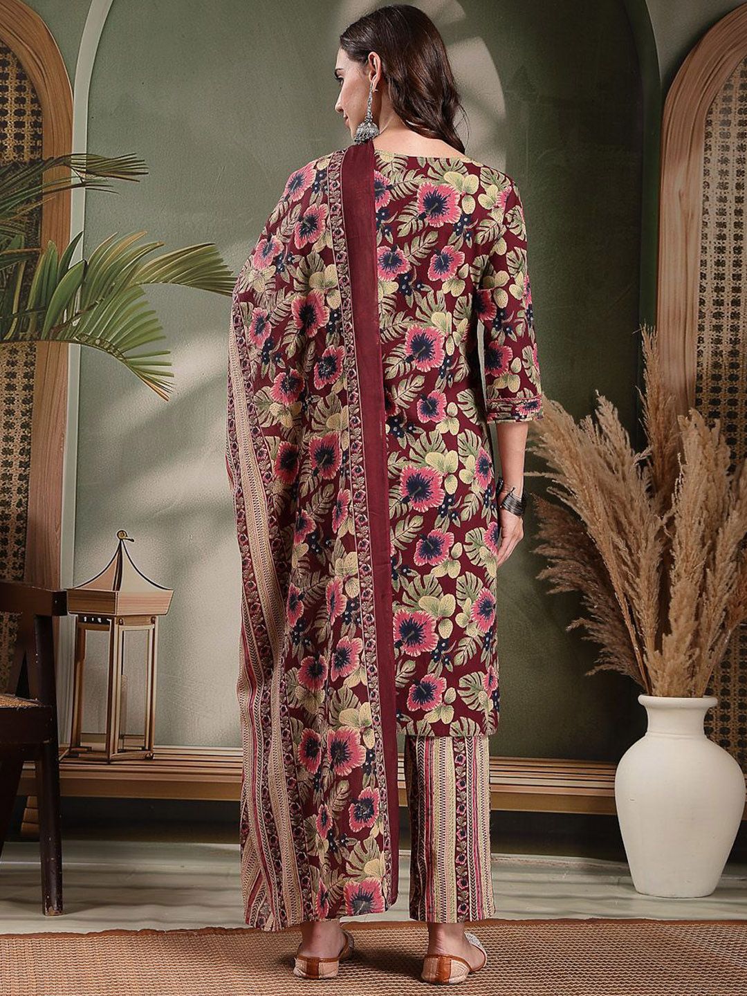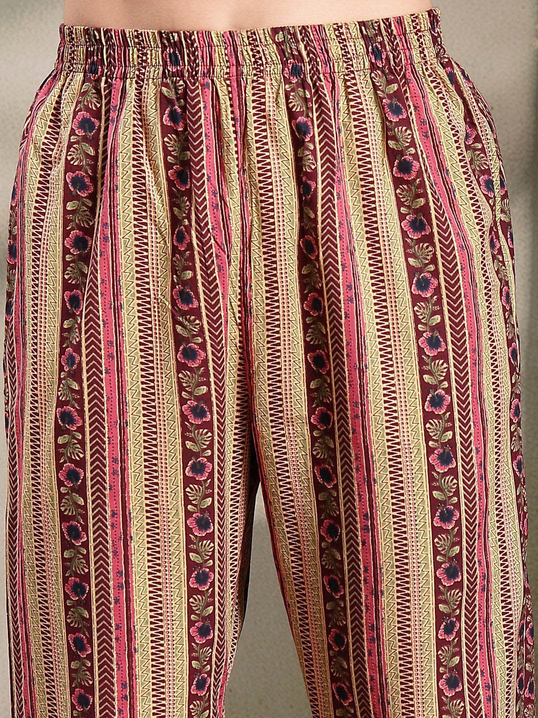 HERE&NOW Women Floral Printed Pure Cotton Kurta with Palazzo & Dupatta