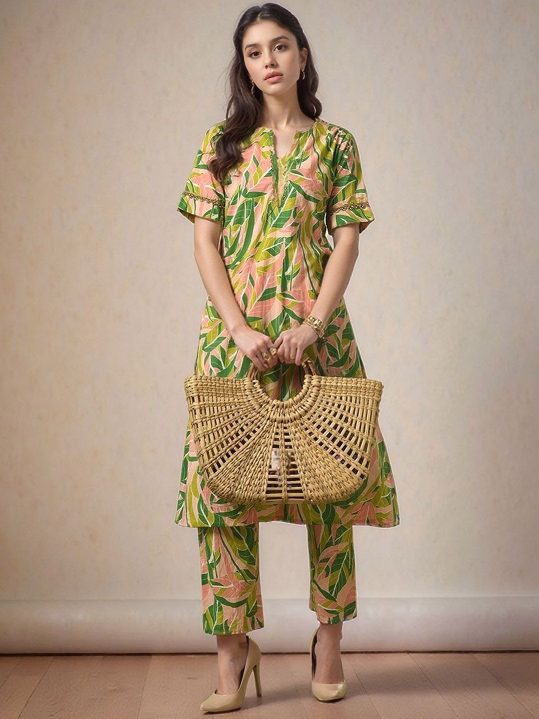 Buy this stylish HERE&NOW Women Floral Printed Regular Beads and Stones Pure Cotton Kurta with Trousers at Marincart Nepal. This product offers great quality and value. Perfect for those looking for the latest trends in fashion. Get yours now at unbeatable prices.