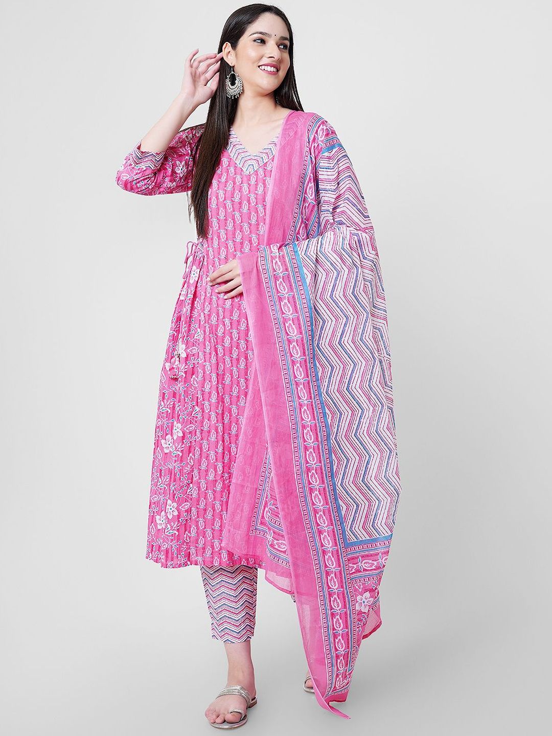 Buy this stylish HERE&NOW Women Floral Printed Regular Gotta Patti Cotton Kurta with Palazzos & Dupatta at Marincart Nepal. This product offers great quality and value. Perfect for those looking for the latest trends in fashion. Get yours now at unbeatable prices.