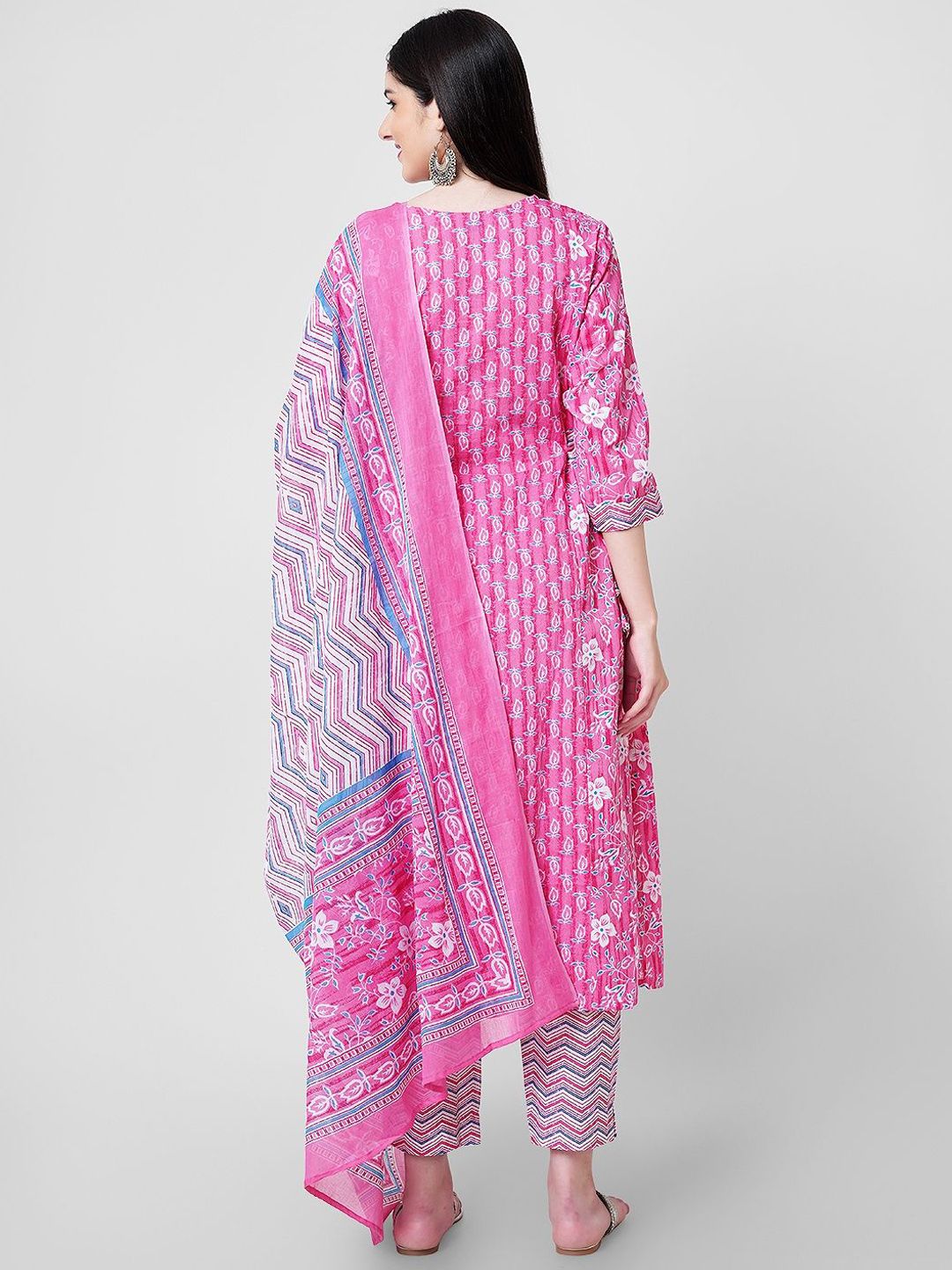 HERE&NOW Women Floral Printed Regular Gotta Patti Cotton Kurta with Palazzos & Dupatta
