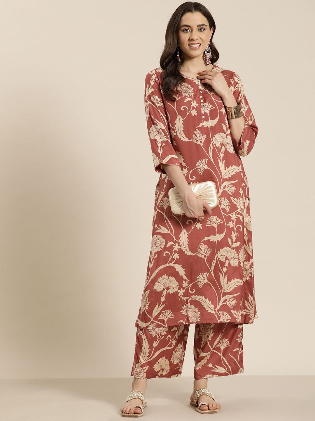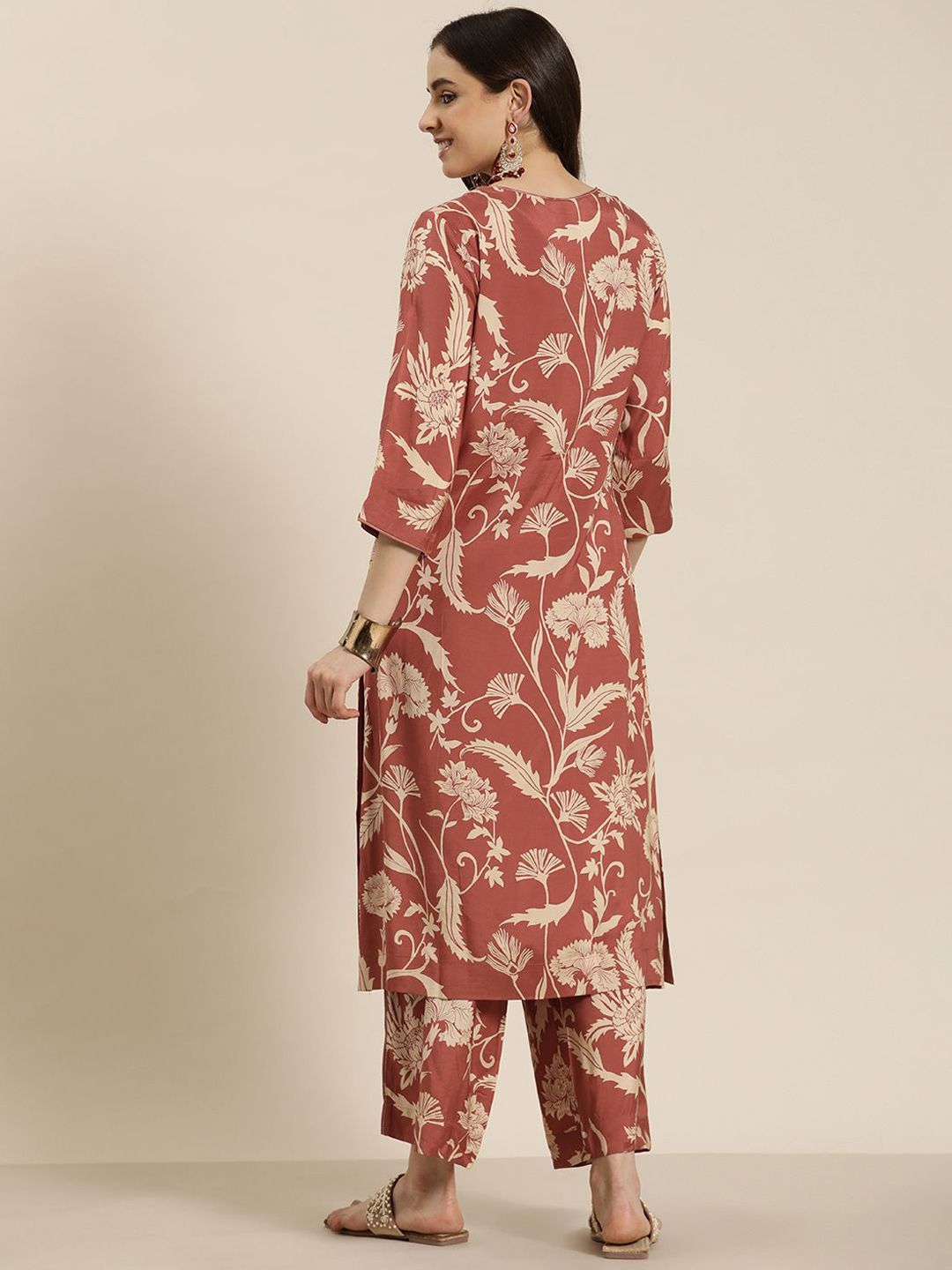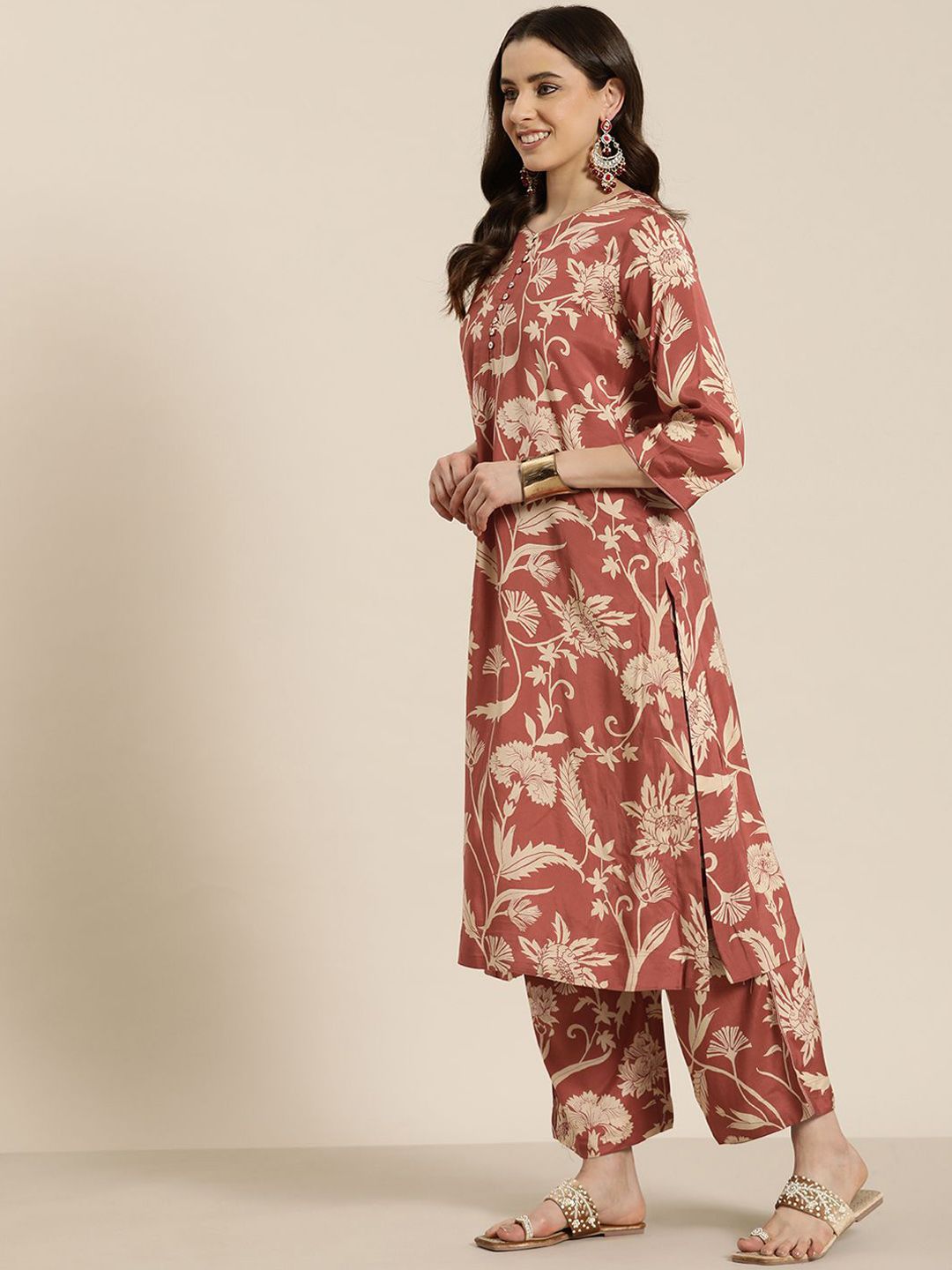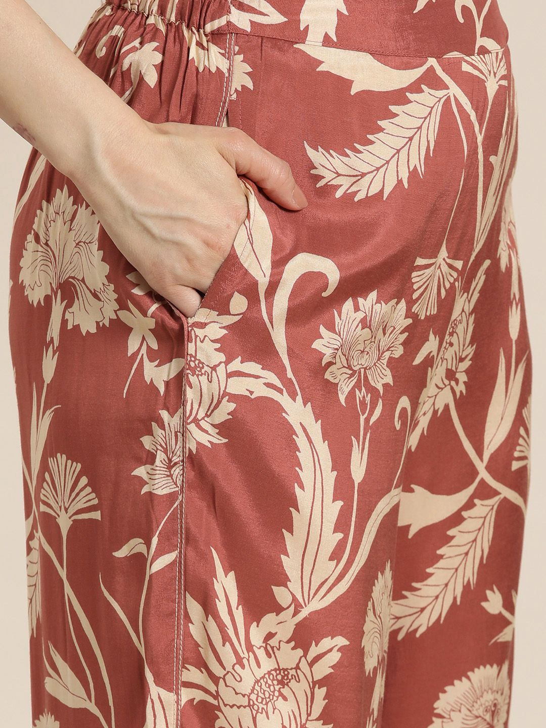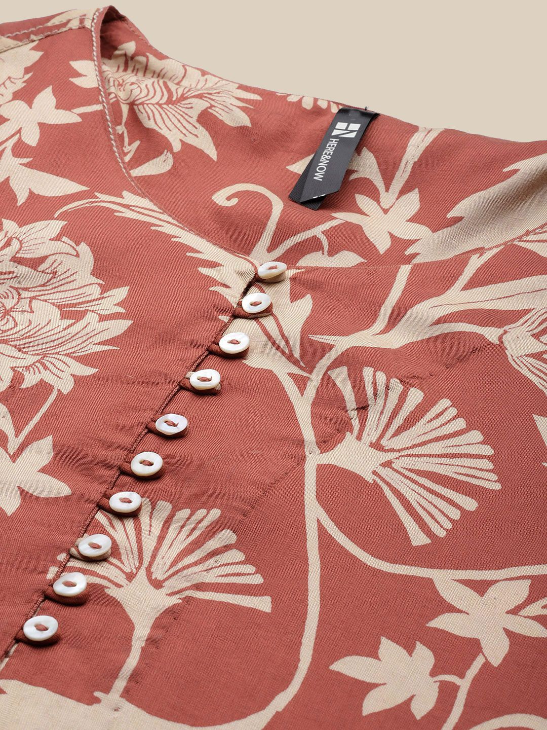 HERE&NOW Women Floral Printed Regular Linen Kurta with Palazzos