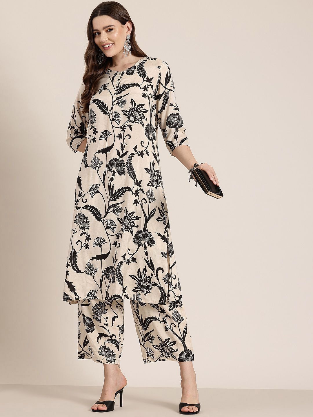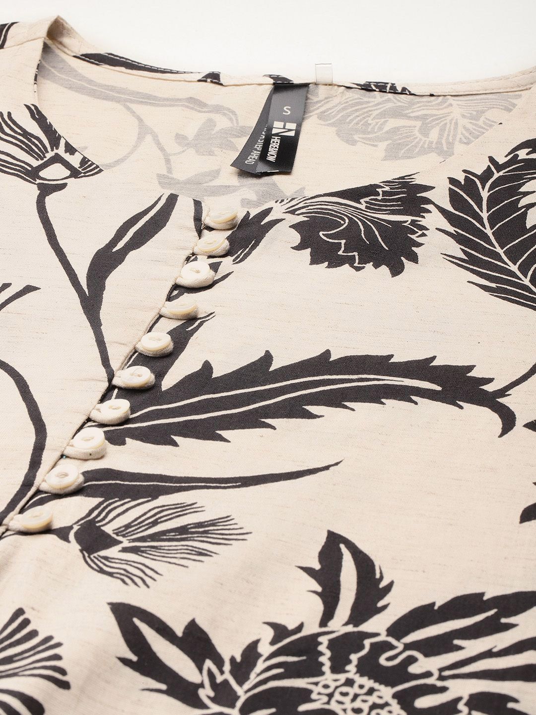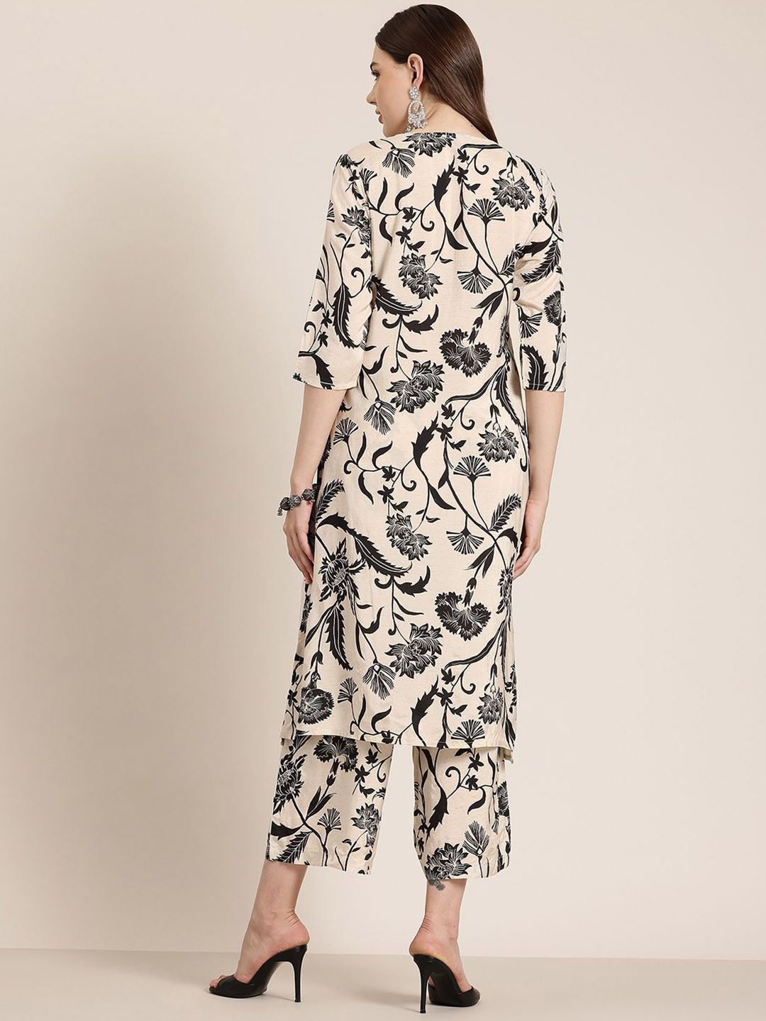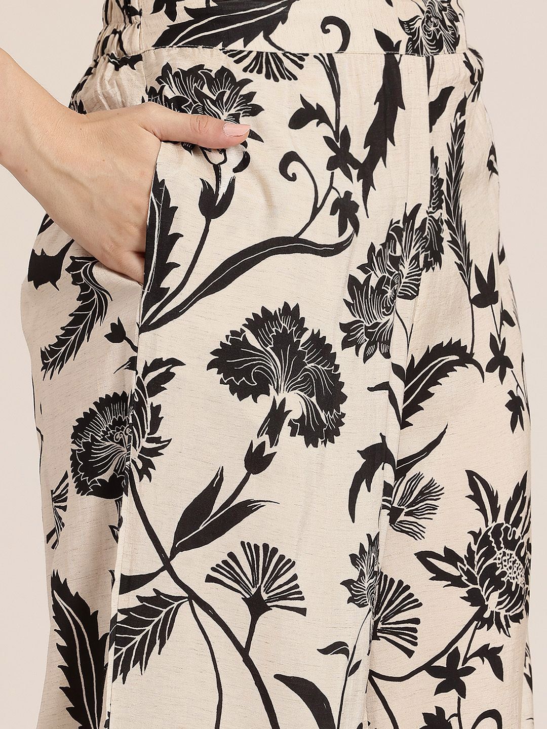 HERE&NOW Women Floral Printed Regular Linen Kurta with Palazzos