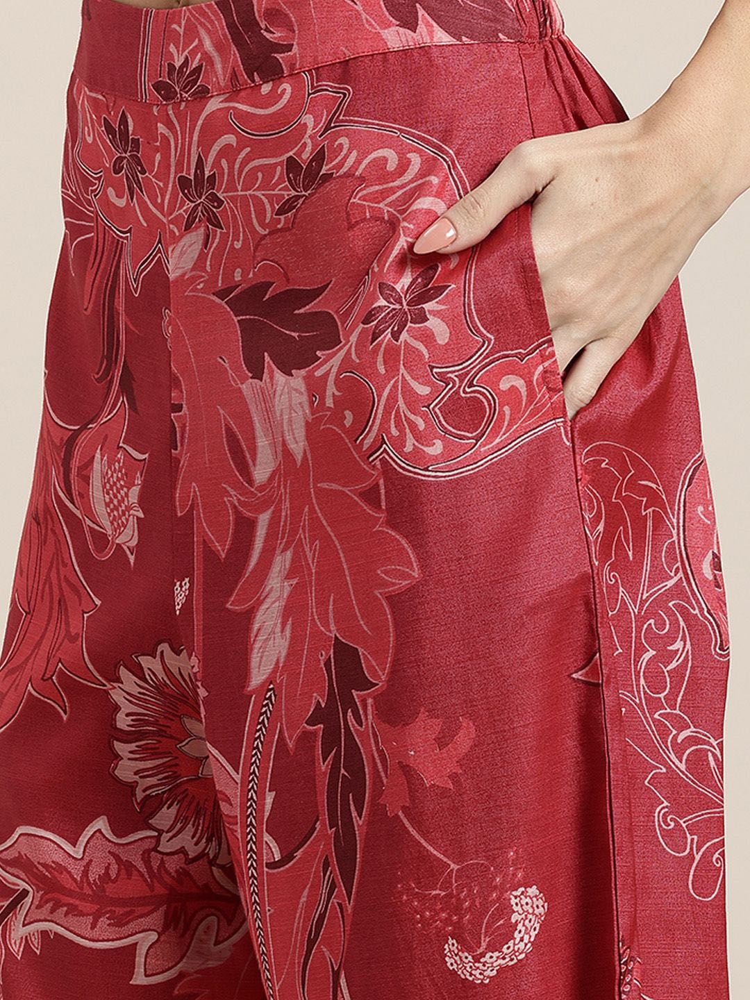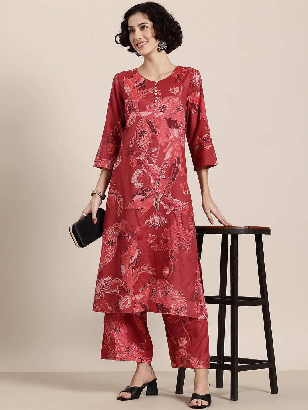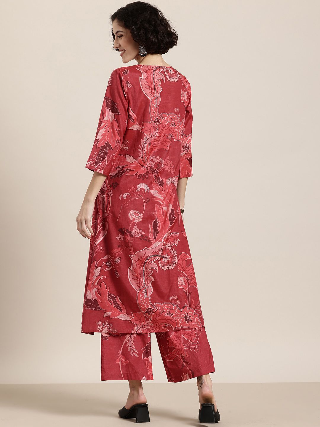 HERE&NOW Women Floral Printed Regular Linen Kurta with Palazzos Kurta Sets