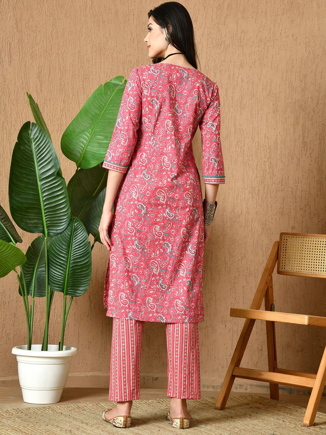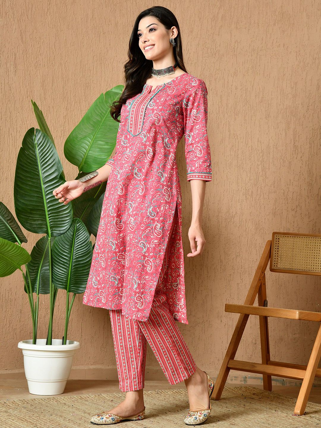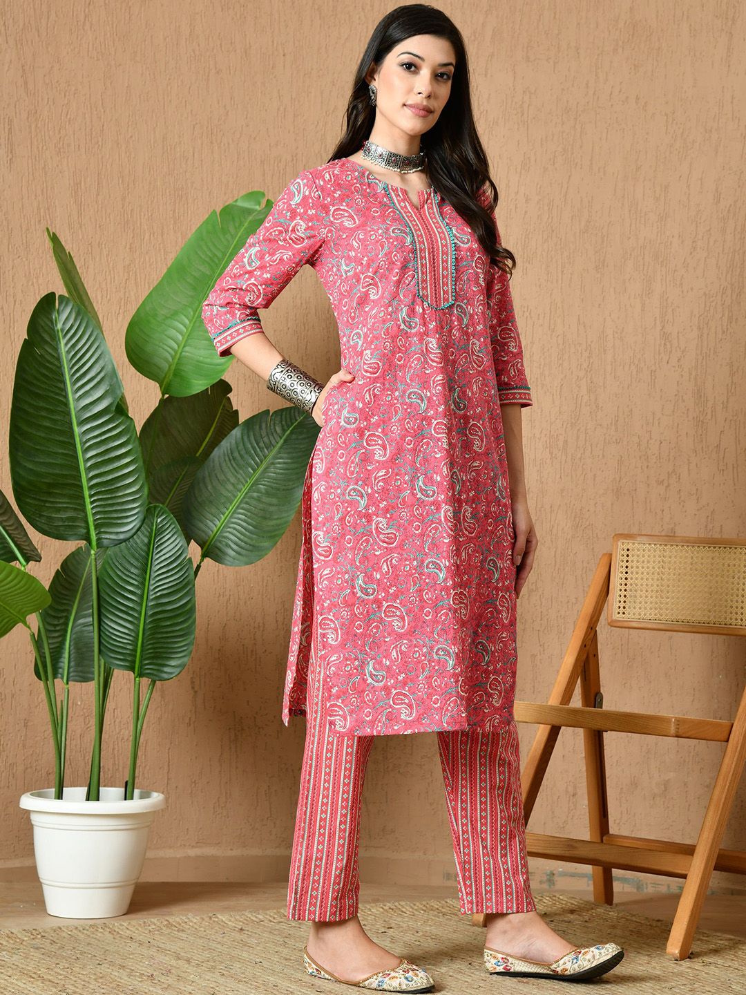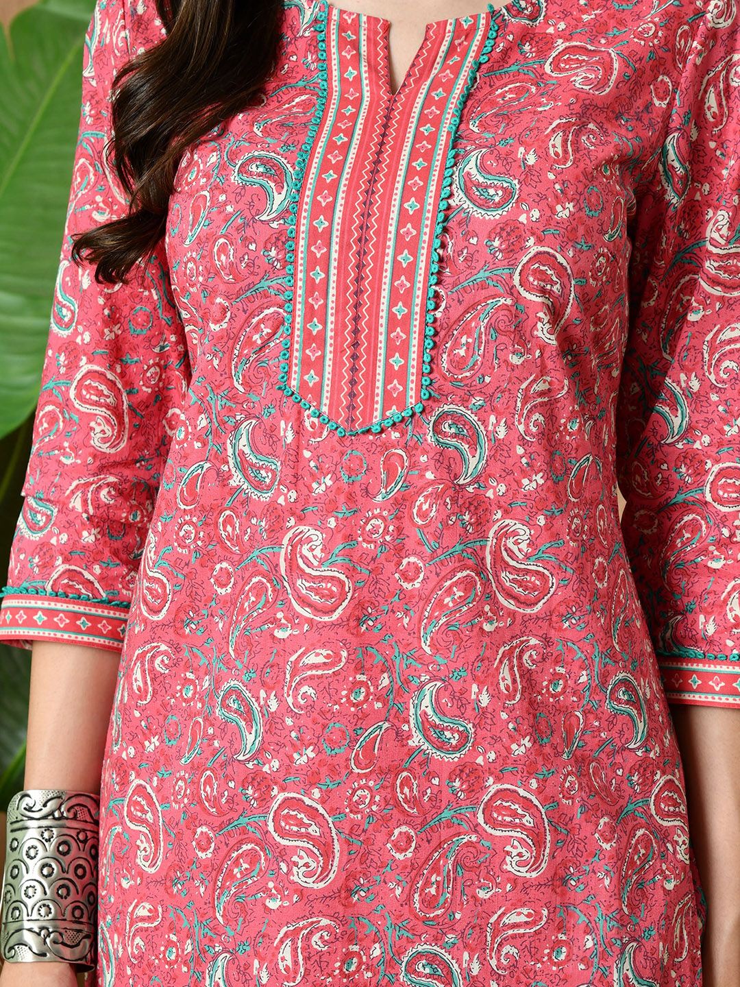 HERE&NOW Women Paisely Printed Regular Pure Cotton Kurta with Trousers