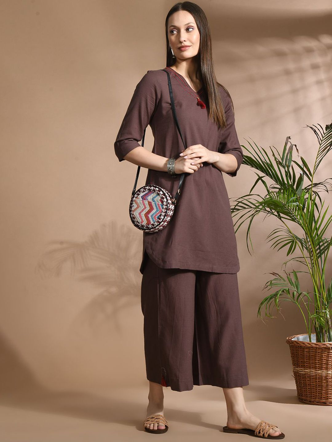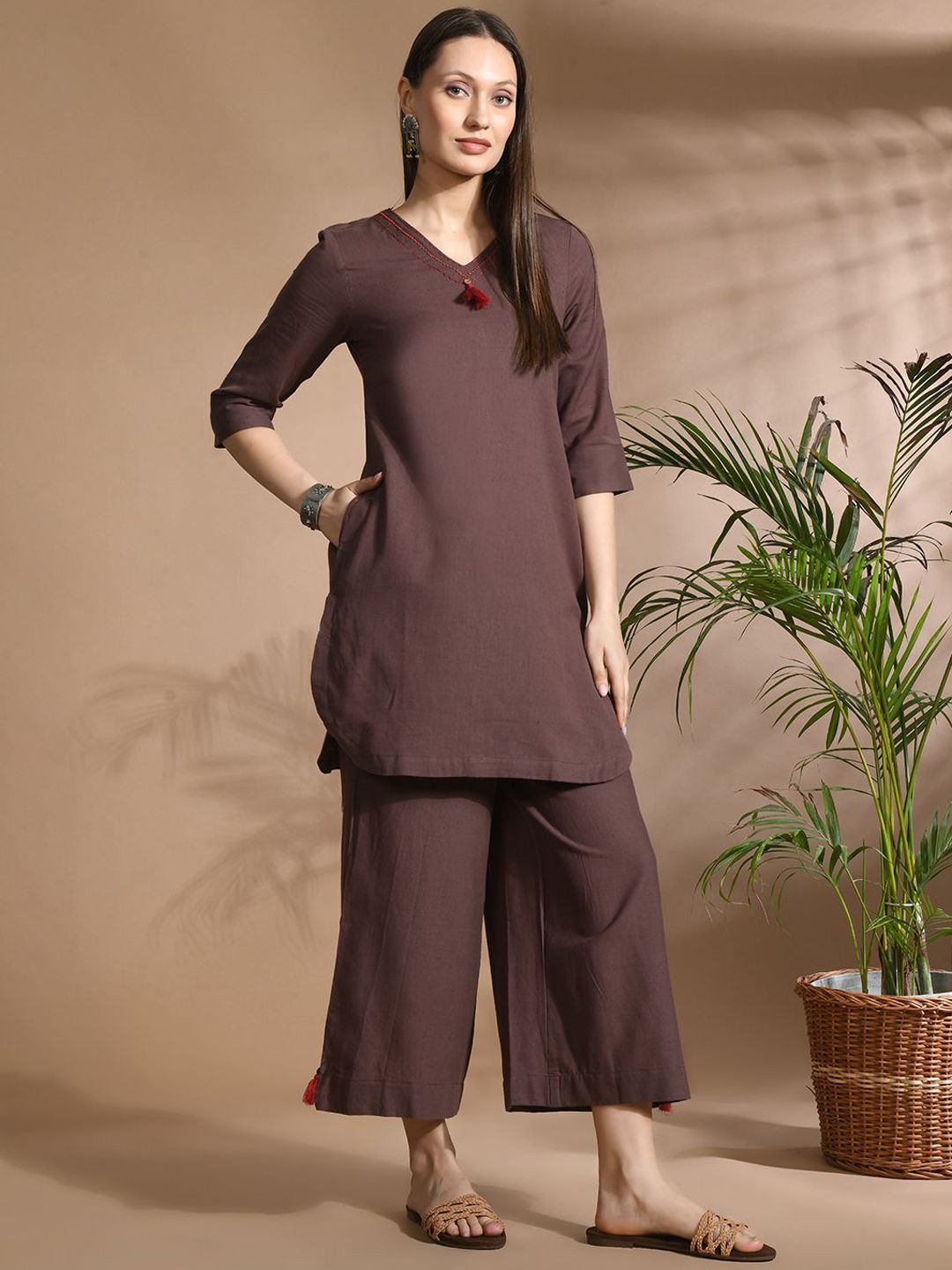 HERE&NOW Women Regular Pure Cotton Kurti with Palazzos