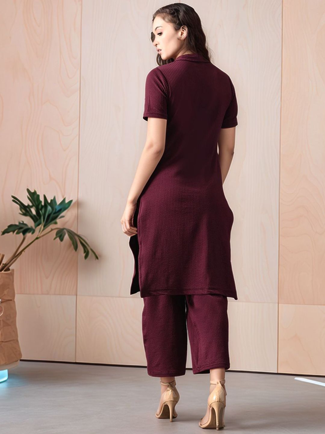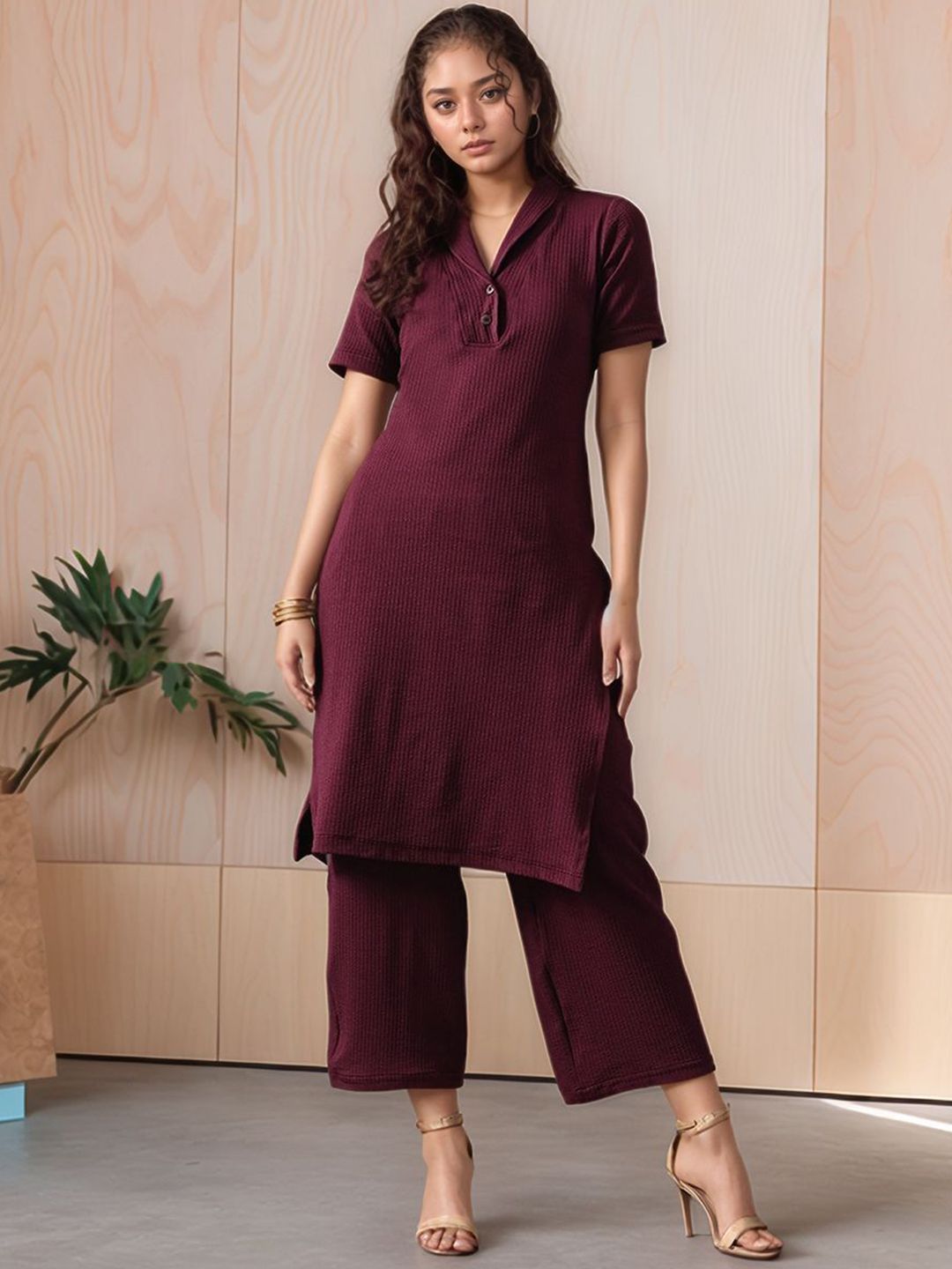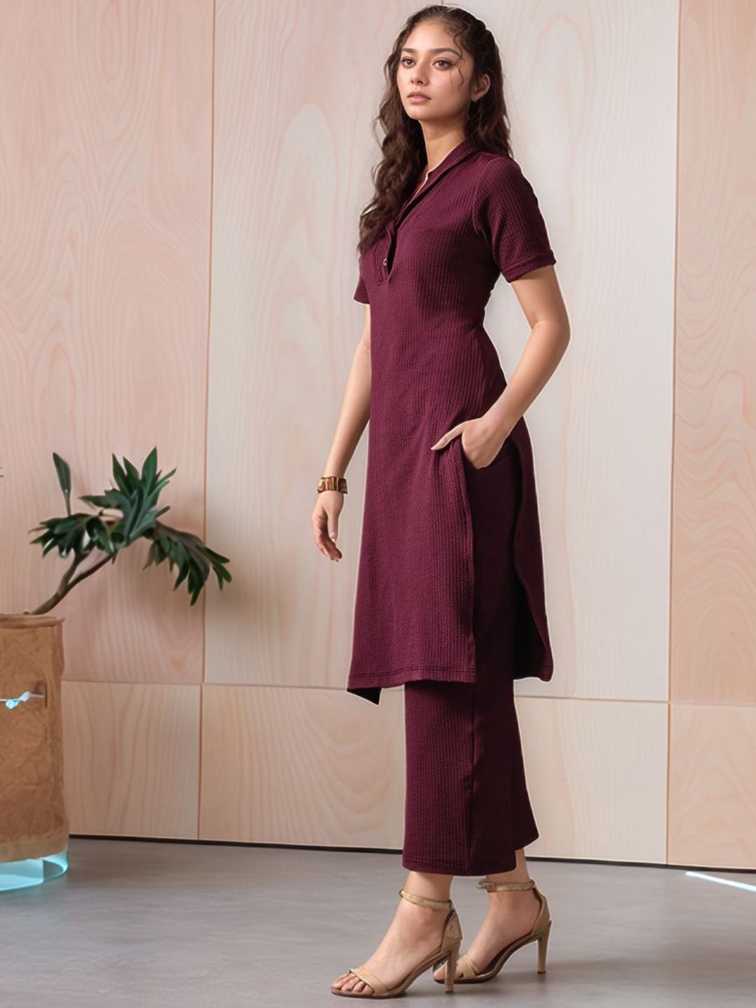 HERE&NOW Women Shirt Collar Regular Kurta with Trousers