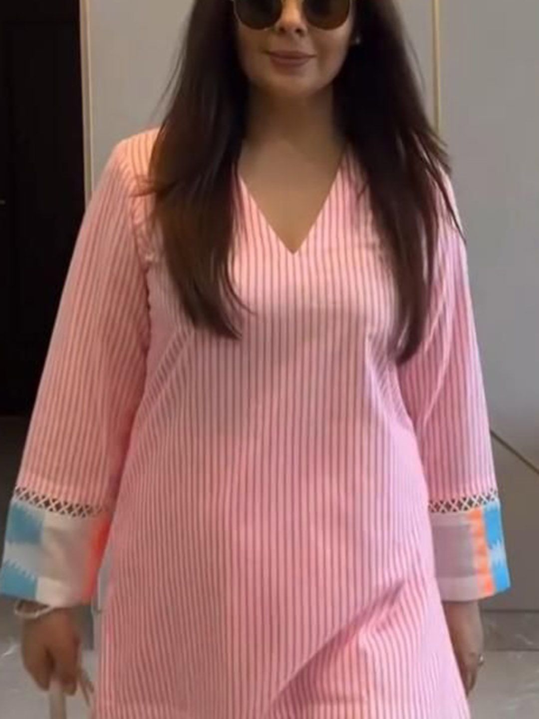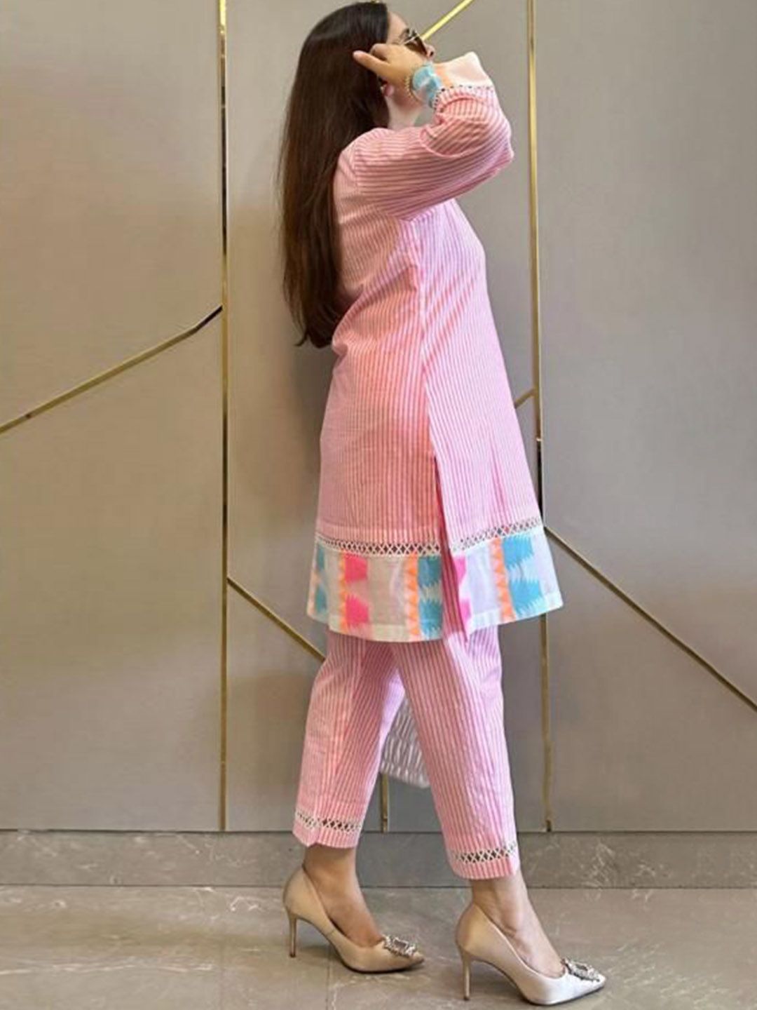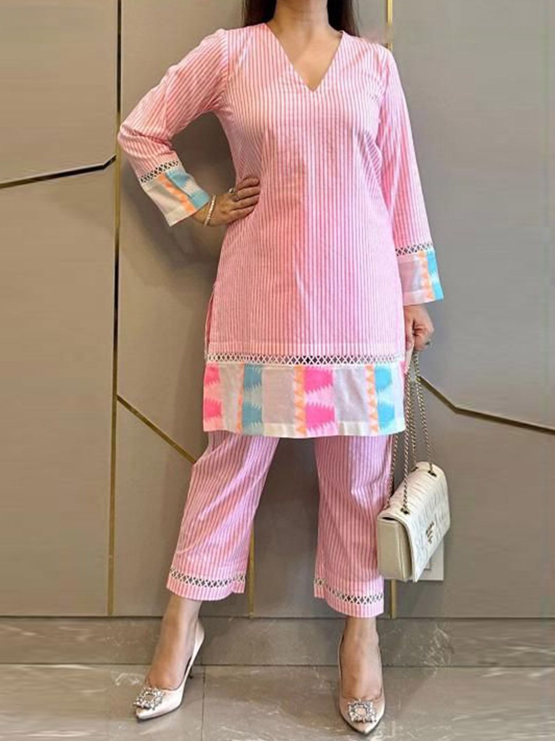 HETVI CREATION Striped V-Neck Straight Kurta With Trousers