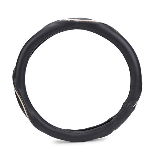 Hi Art Faux Leather Car Steering Wheel Cover Compatible for Tata Tiago, [ExtraGripWave467, Black and Beige]