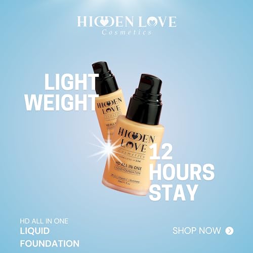 Hidden love HD All in One Liquid Foundation | Flawless Matte Finish for All Skin Type | Waterproof, Lightweight, Full Coverage & Long Lasting Glow | 30ml (Wheatish, 30 Ml)