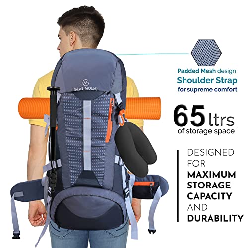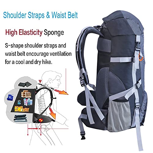 Hiking Bag 65 liters Rucksack Travel Backpack for Adventure Camping Trekking Bag with Rain Cover & Laptop Compartment-D. Grey