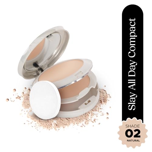 Hilary Rhoda Slay All Day Compact | 2 in 1 Compact | Matte & Shimmer Finish | Moisture-Infused & With Sponge | 20g (Natural - Shade 02)