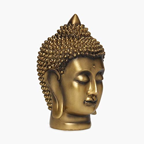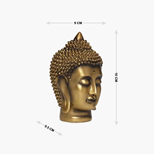 Home Centre Polyresin Buddha Face Figurine, 9 cm x 9.5 cm x 16 cm, Golden, 1 Pc