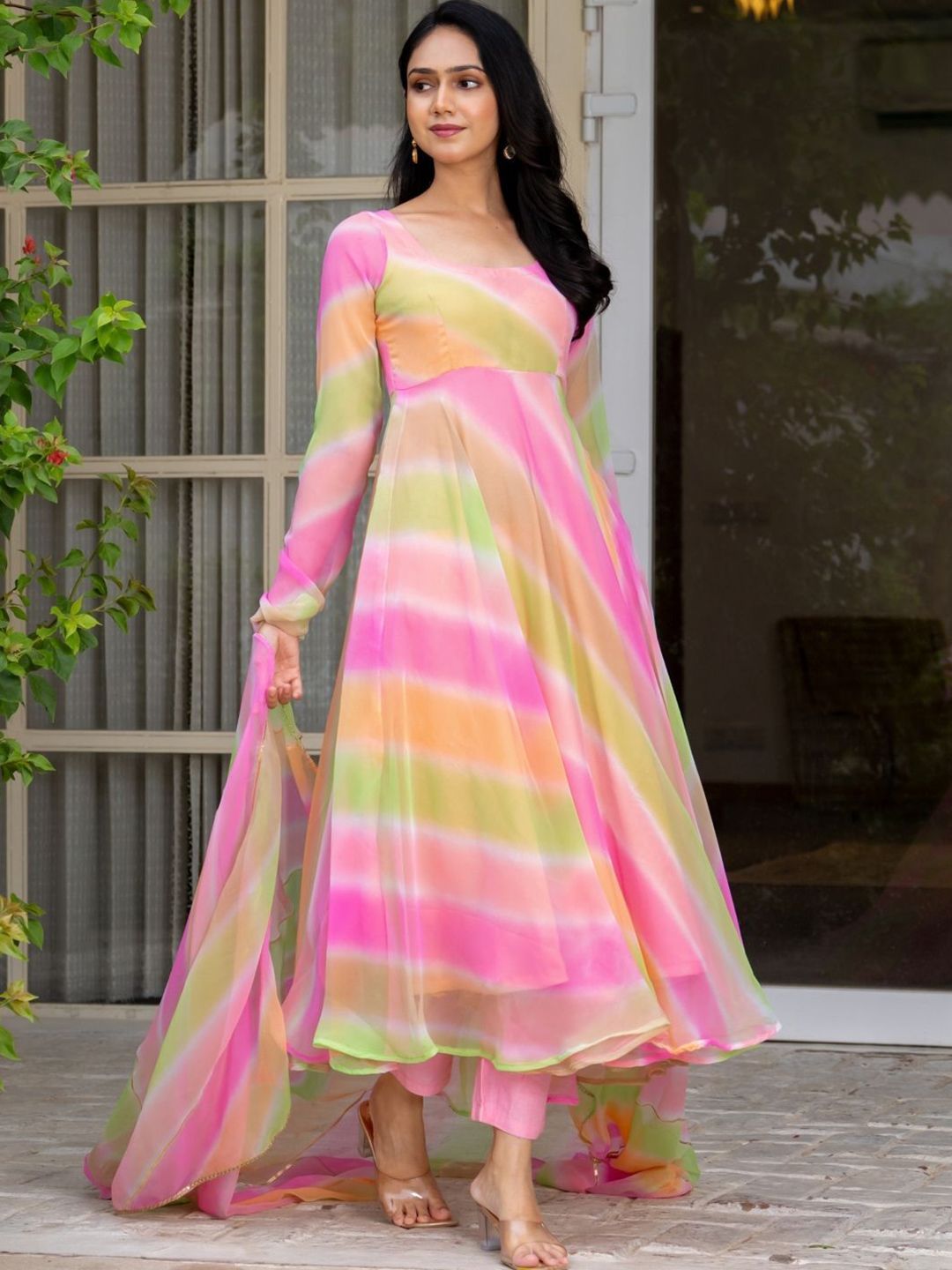 HOUSE OF JAMOTI Women Colourblocked Printed Regular Kurta with Trousers & With Dupatta