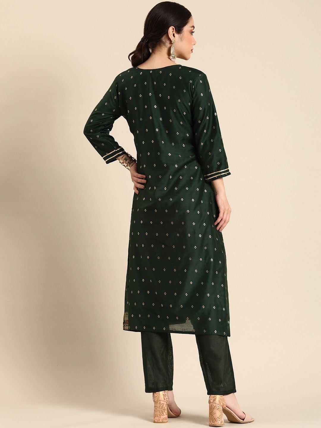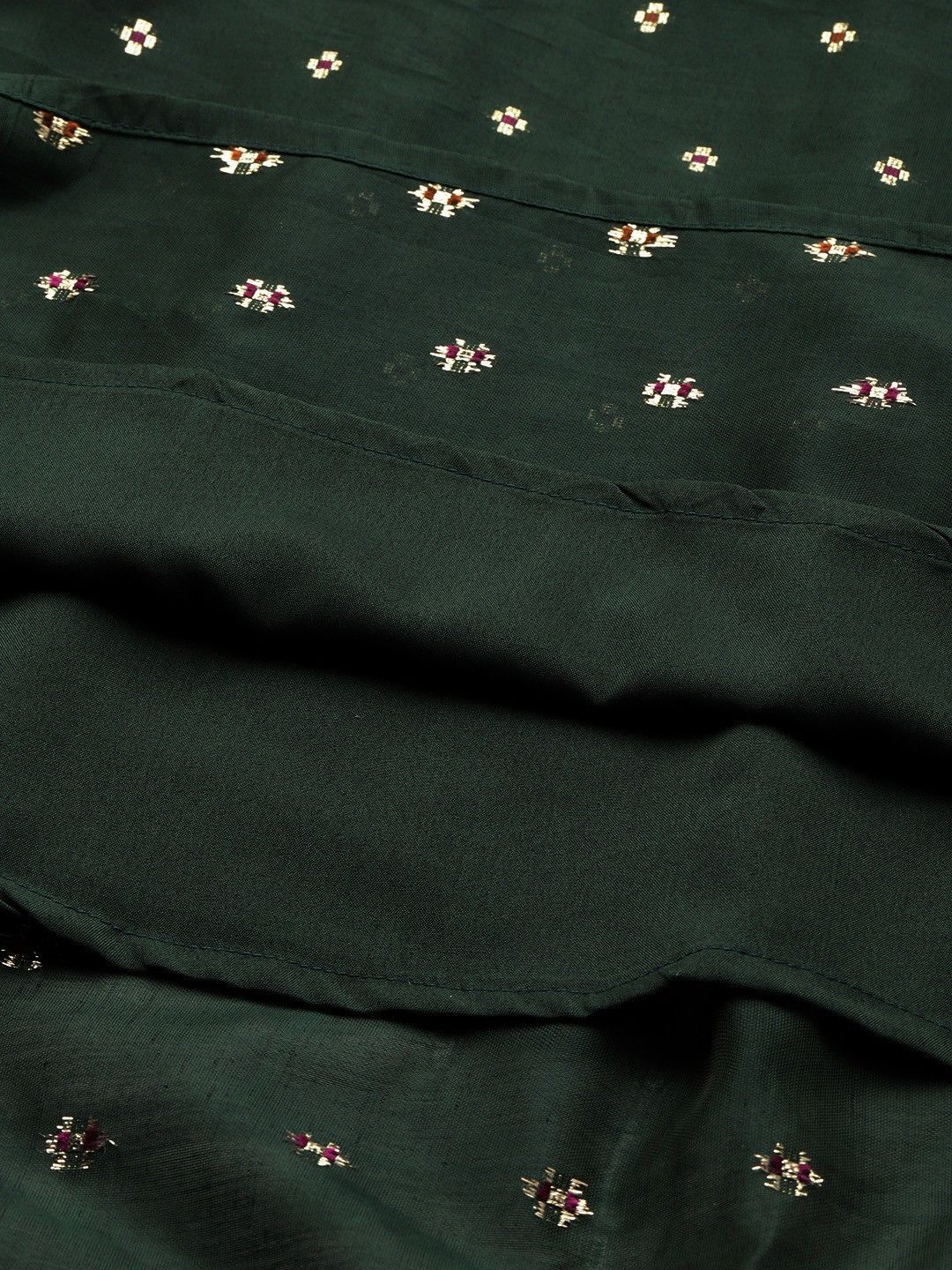 House of Pataudi Floral Printed Pleated Chanderi Silk Anarkali Kurta & Trousers
