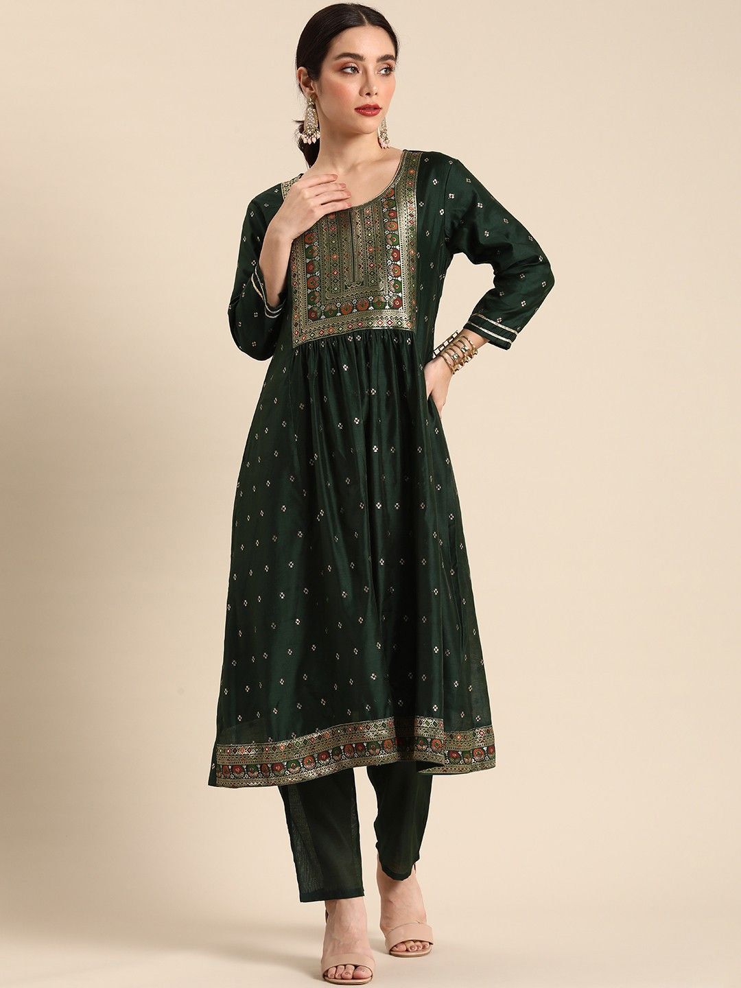 Buy this stylish House of Pataudi Floral Printed Pleated Chanderi Silk Anarkali Kurta & Trousers at Marincart Nepal. This product offers great quality and value. Perfect for those looking for the latest trends in fashion. Get yours now at unbeatable prices.