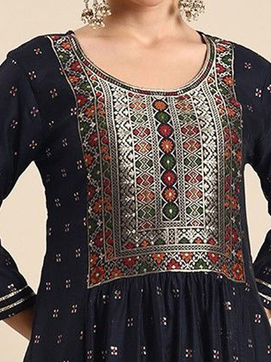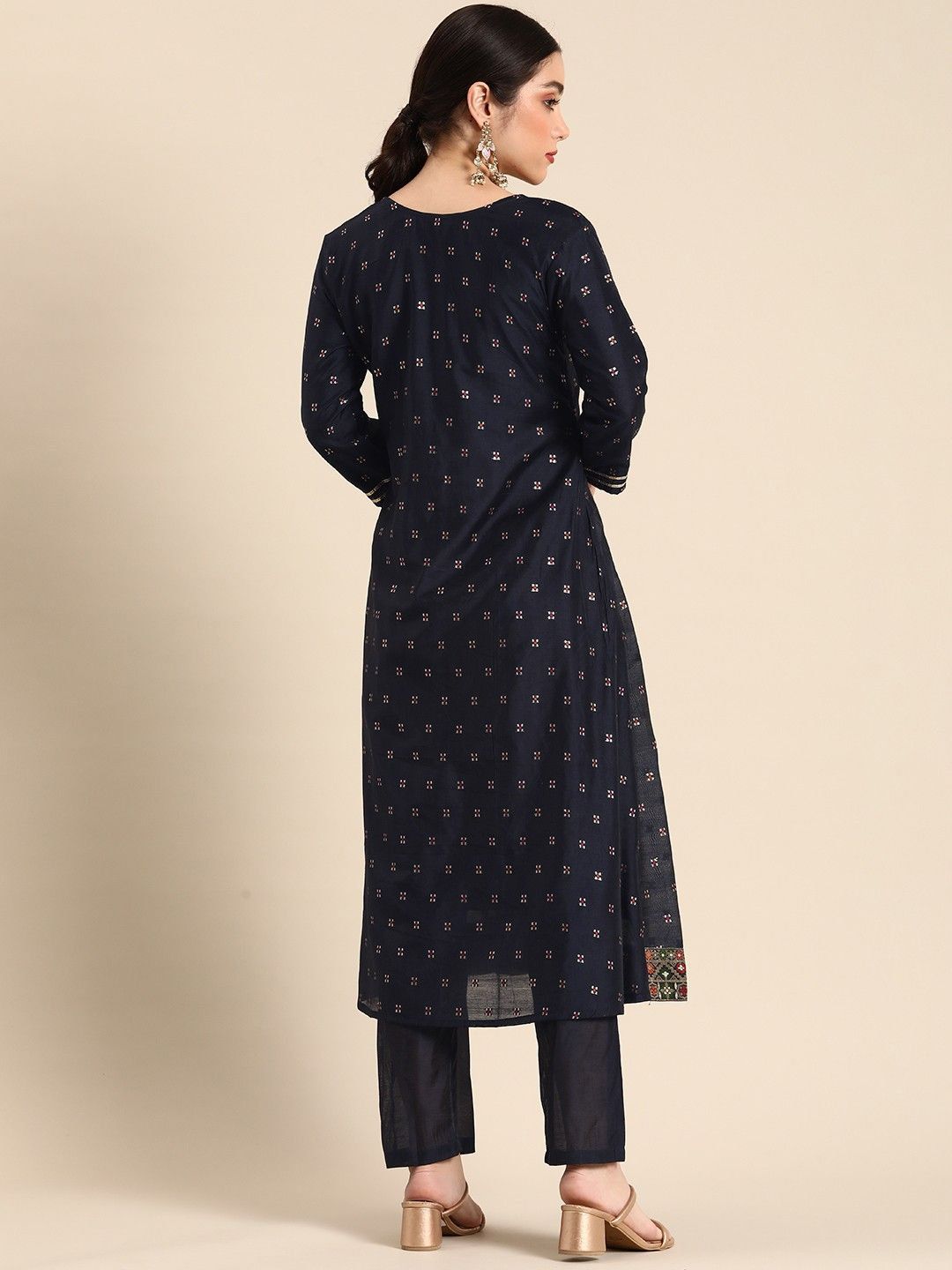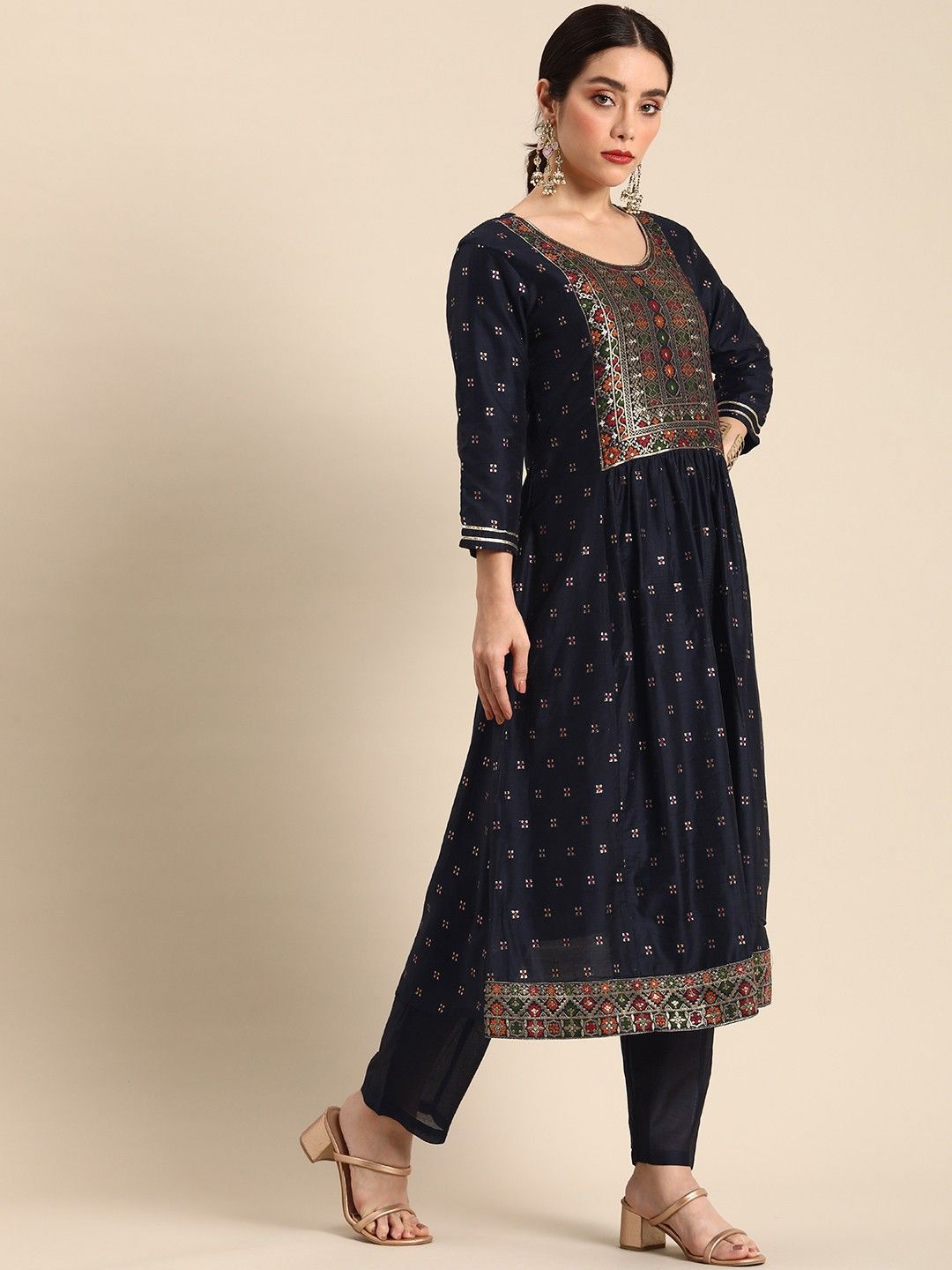 House of Pataudi Women Ethnic Motifs Zari Pleated A-Line Kurta & Trouser