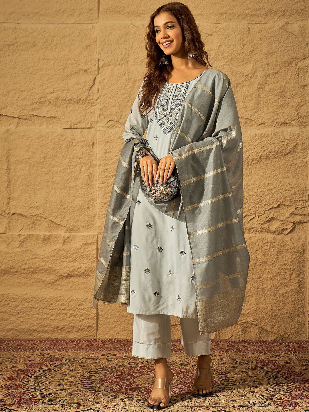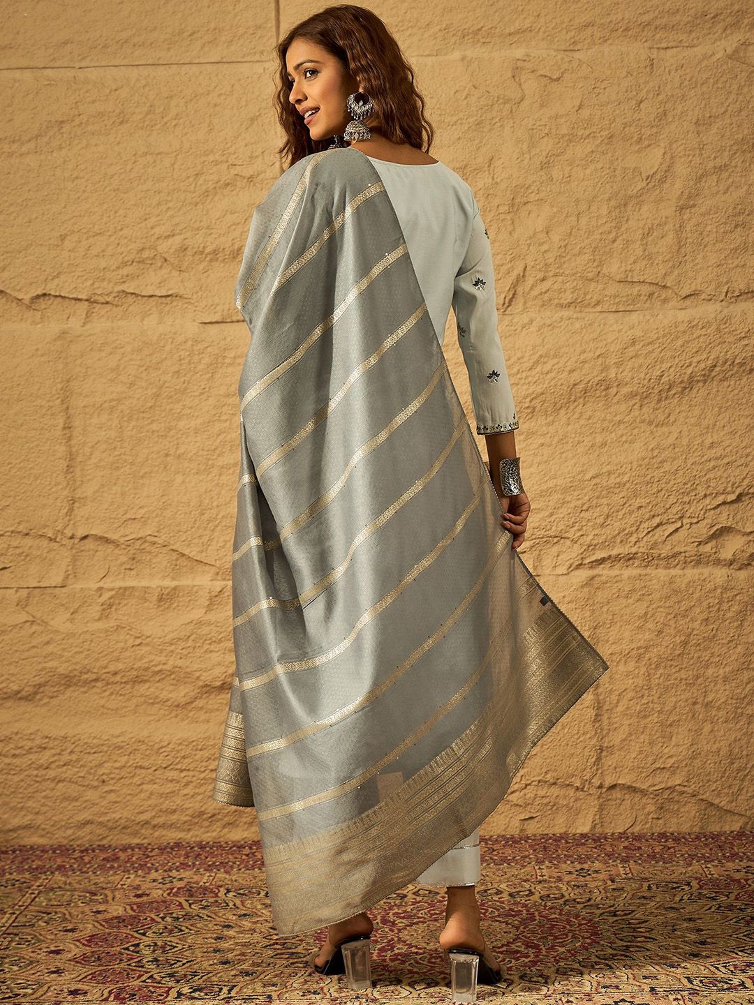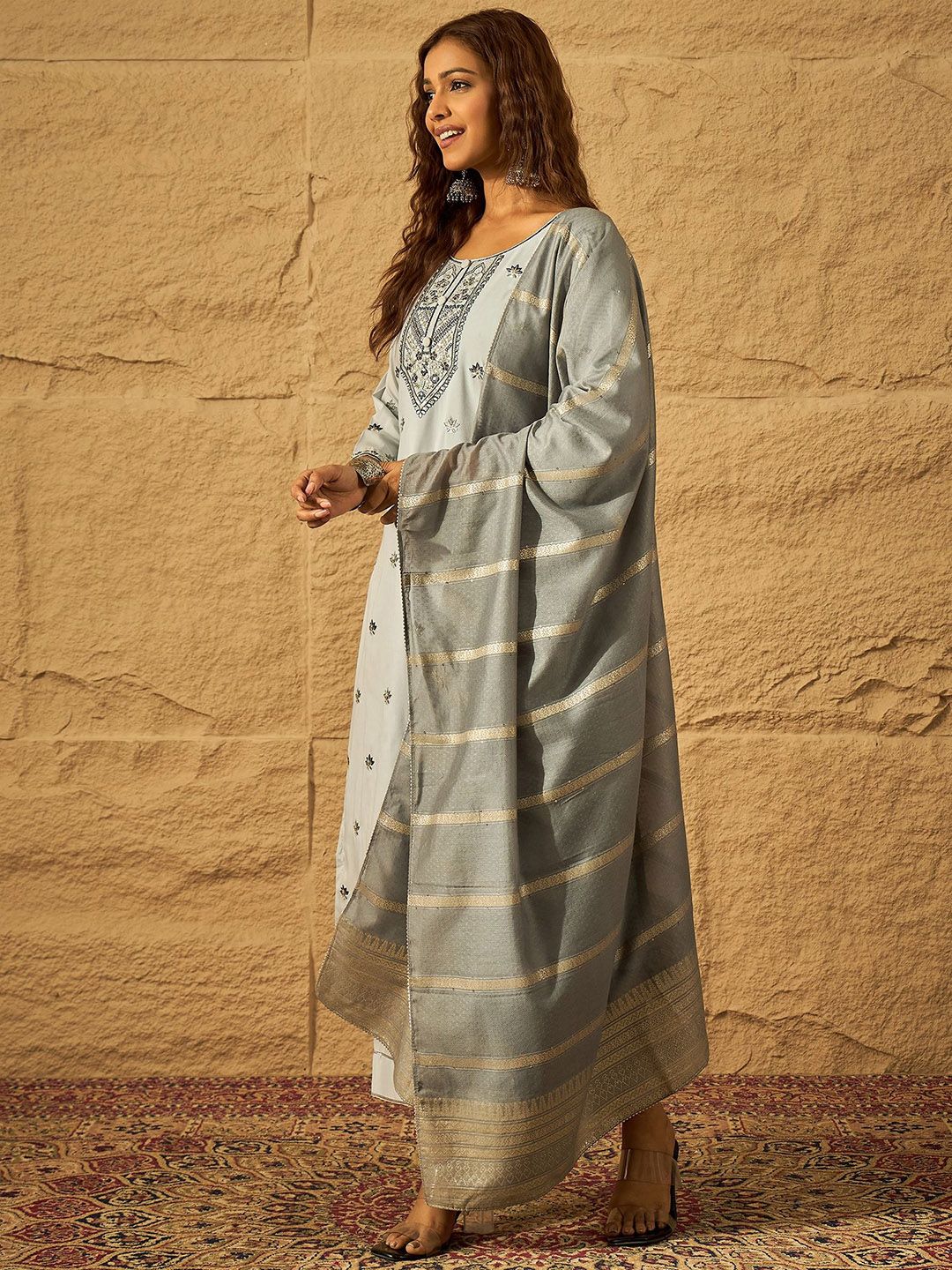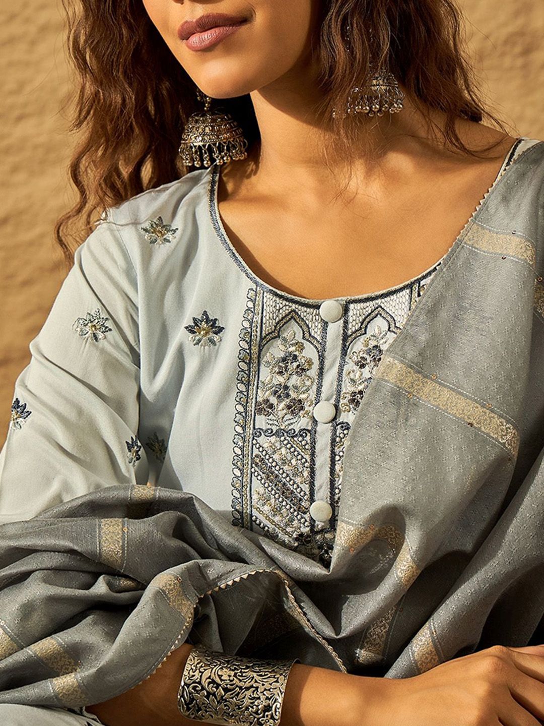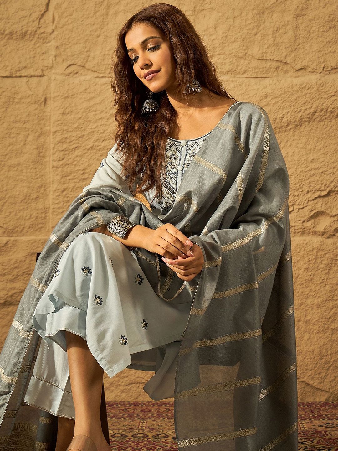 House of Pataudi Women Floral Embroidered Kurta with Trousers & Dupatta