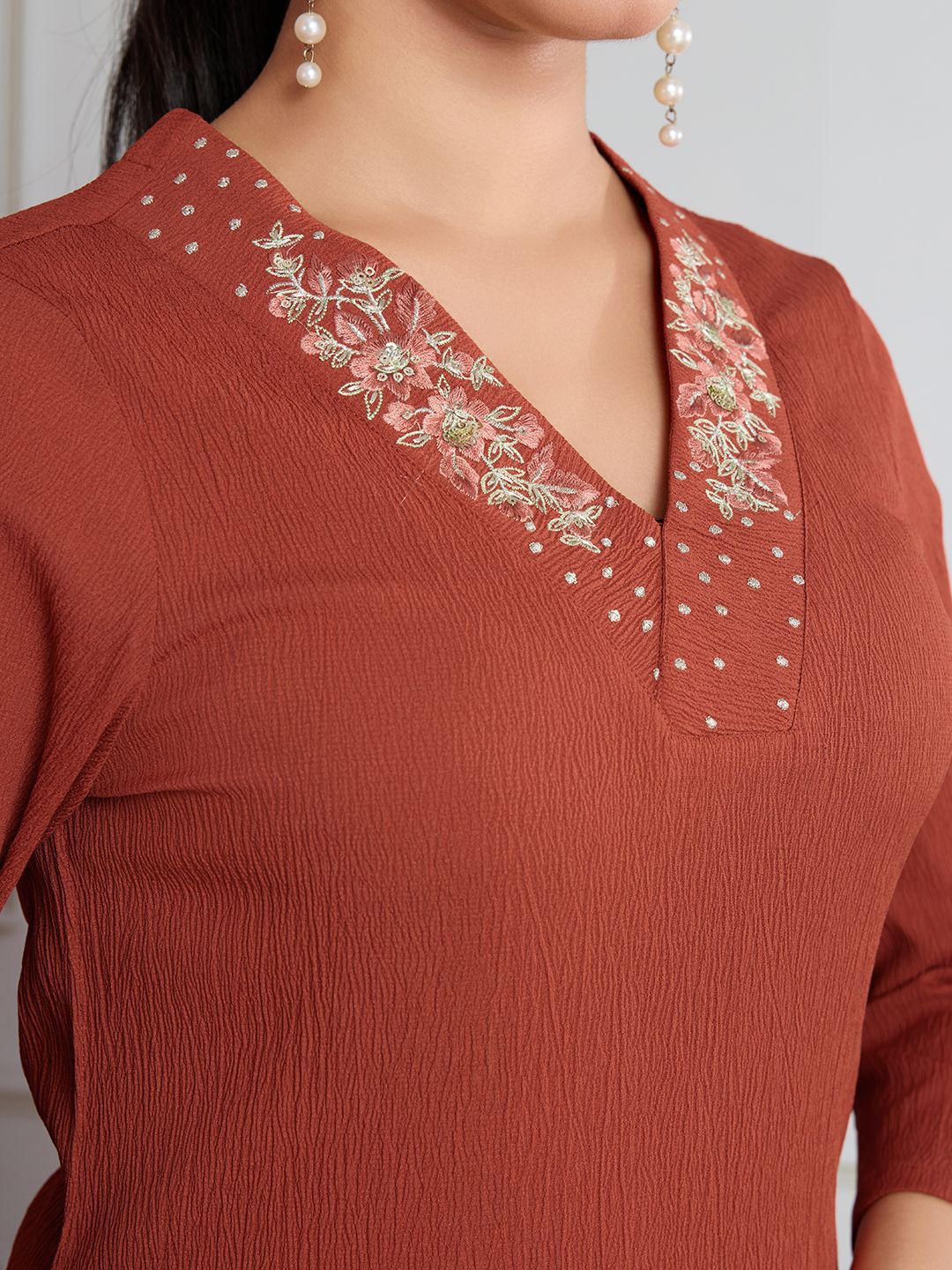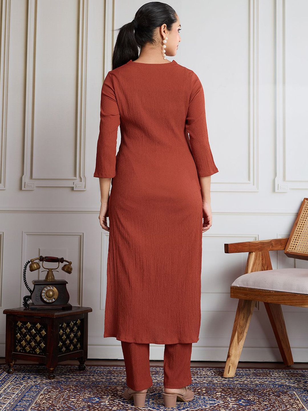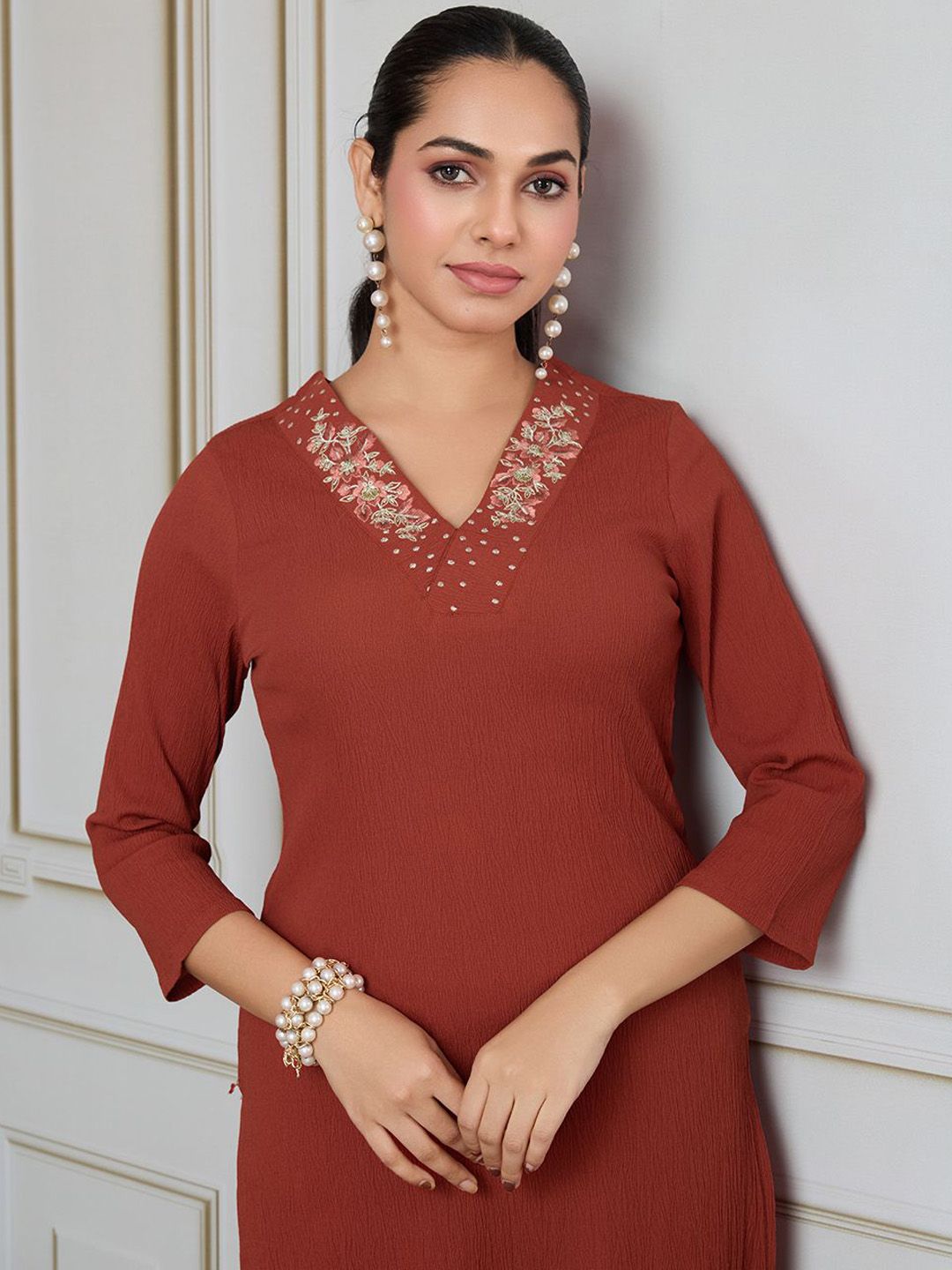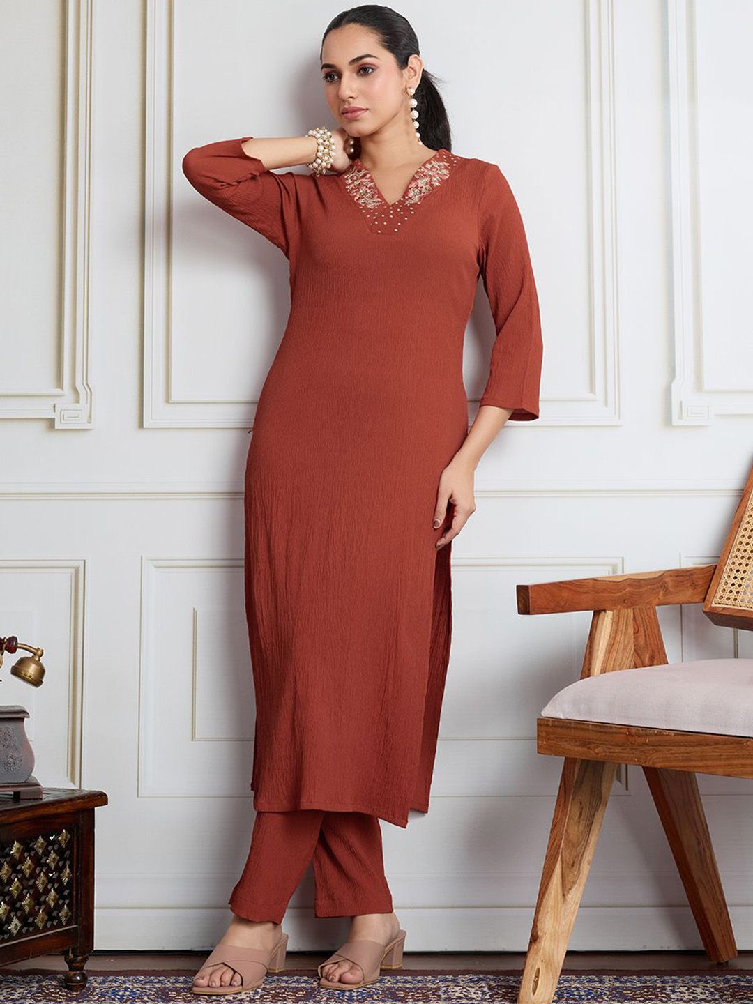 House of Pataudi Women Floral Embroidered Straight Kurta With Trousers