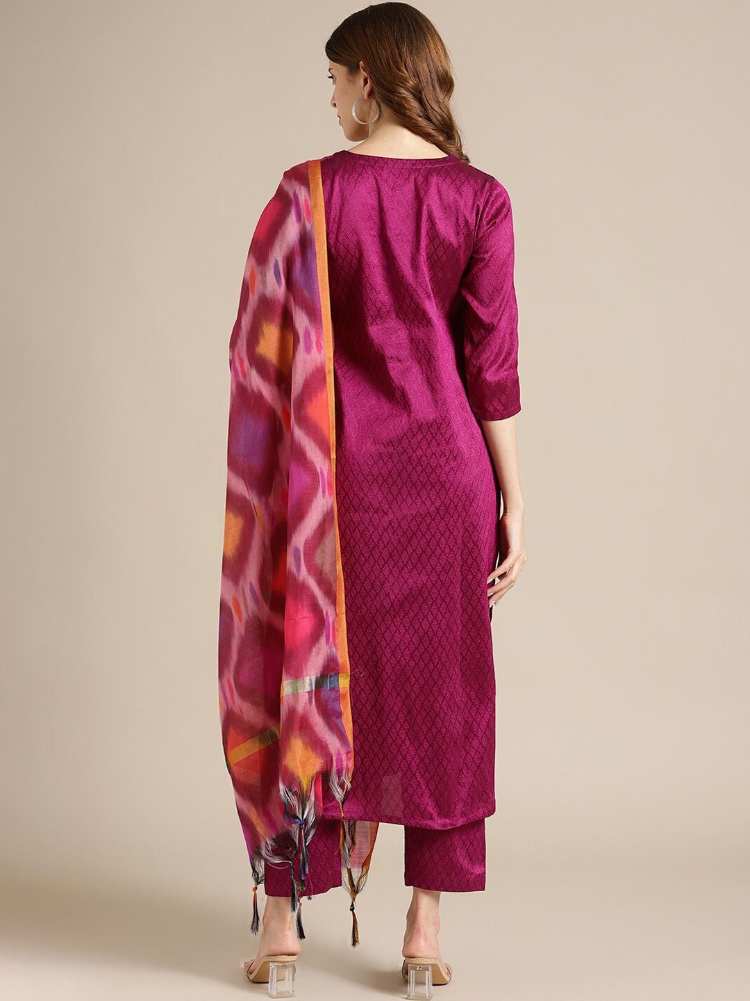 House of Pataudi Women Floral Zari Embroidered Straight Kurta & Trousers With Dupatta