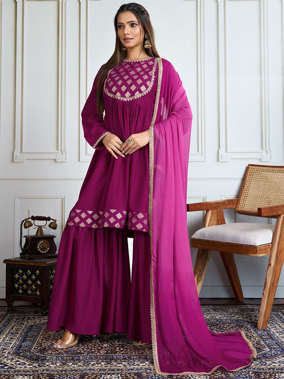 Buy this stylish House of Pataudi Women Geometric Embroidered Kurta with Sharara & Dupatta at Marincart Nepal. This product offers great quality and value. Perfect for those looking for the latest trends in fashion. Get yours now at unbeatable prices.