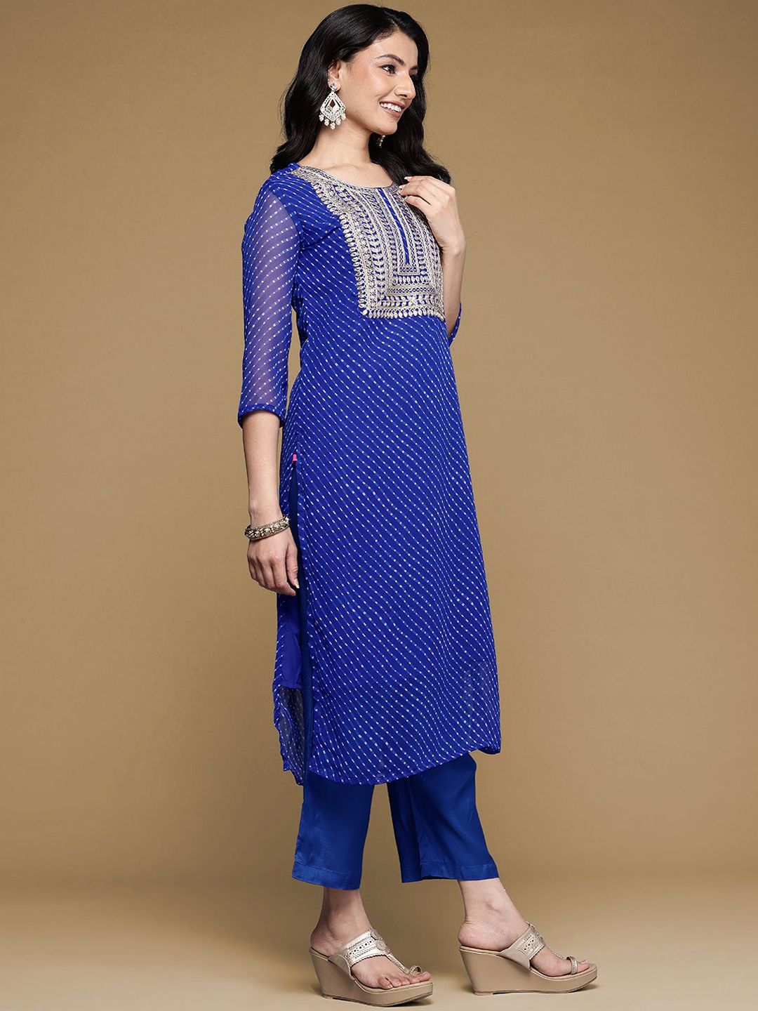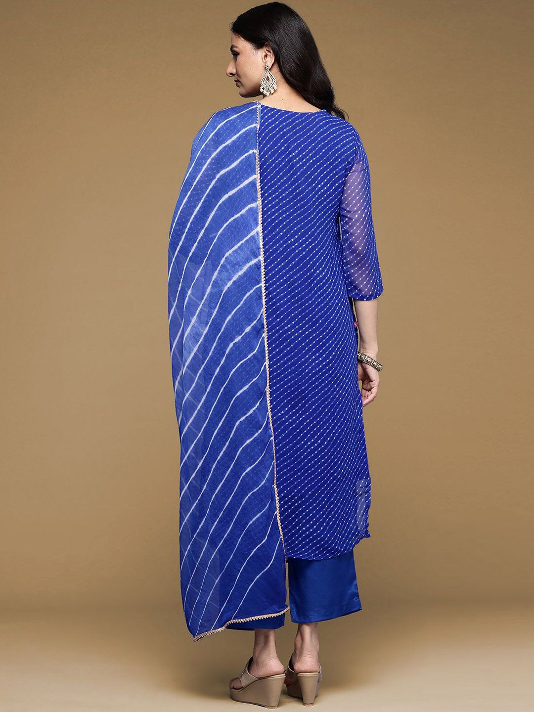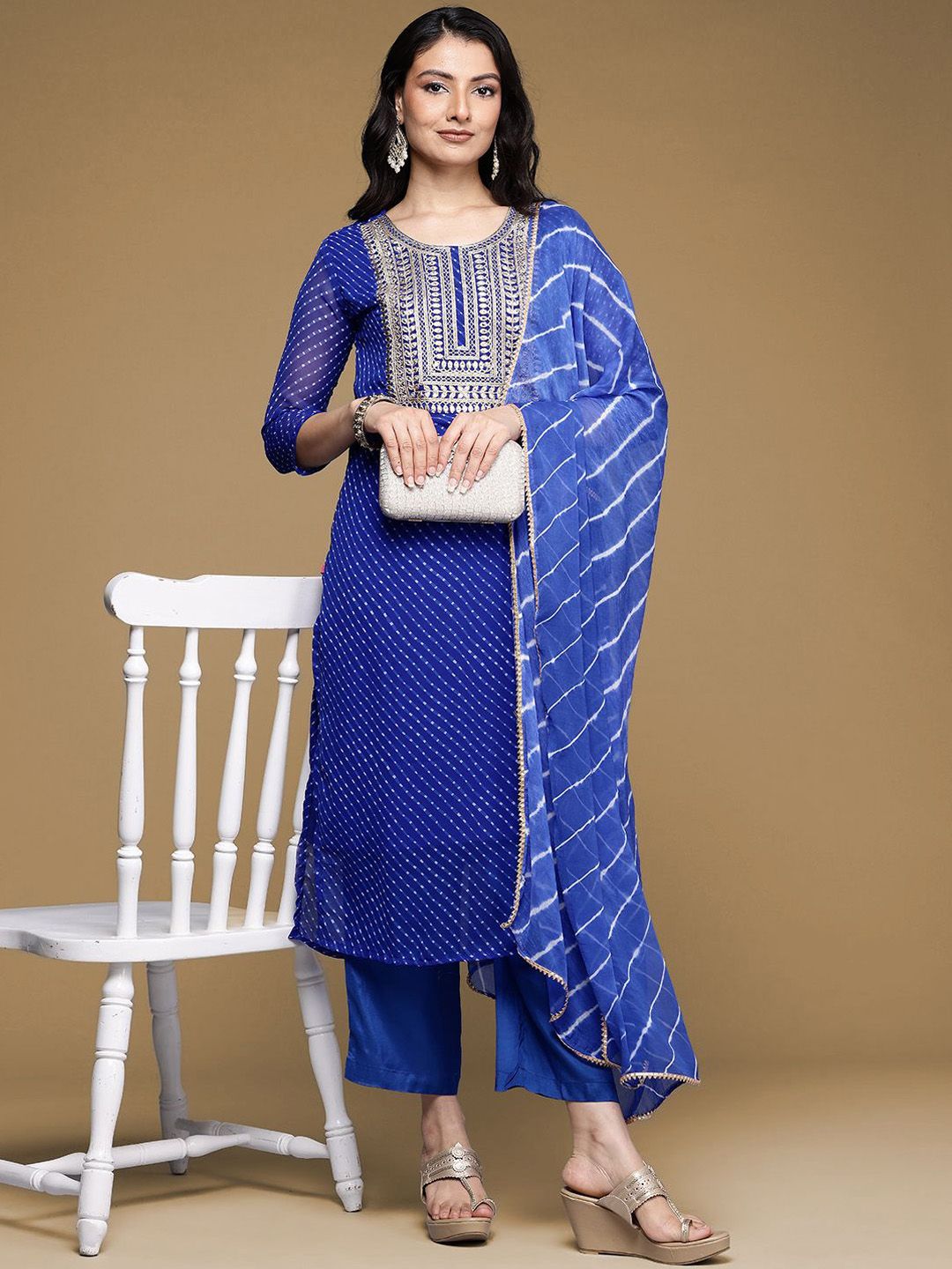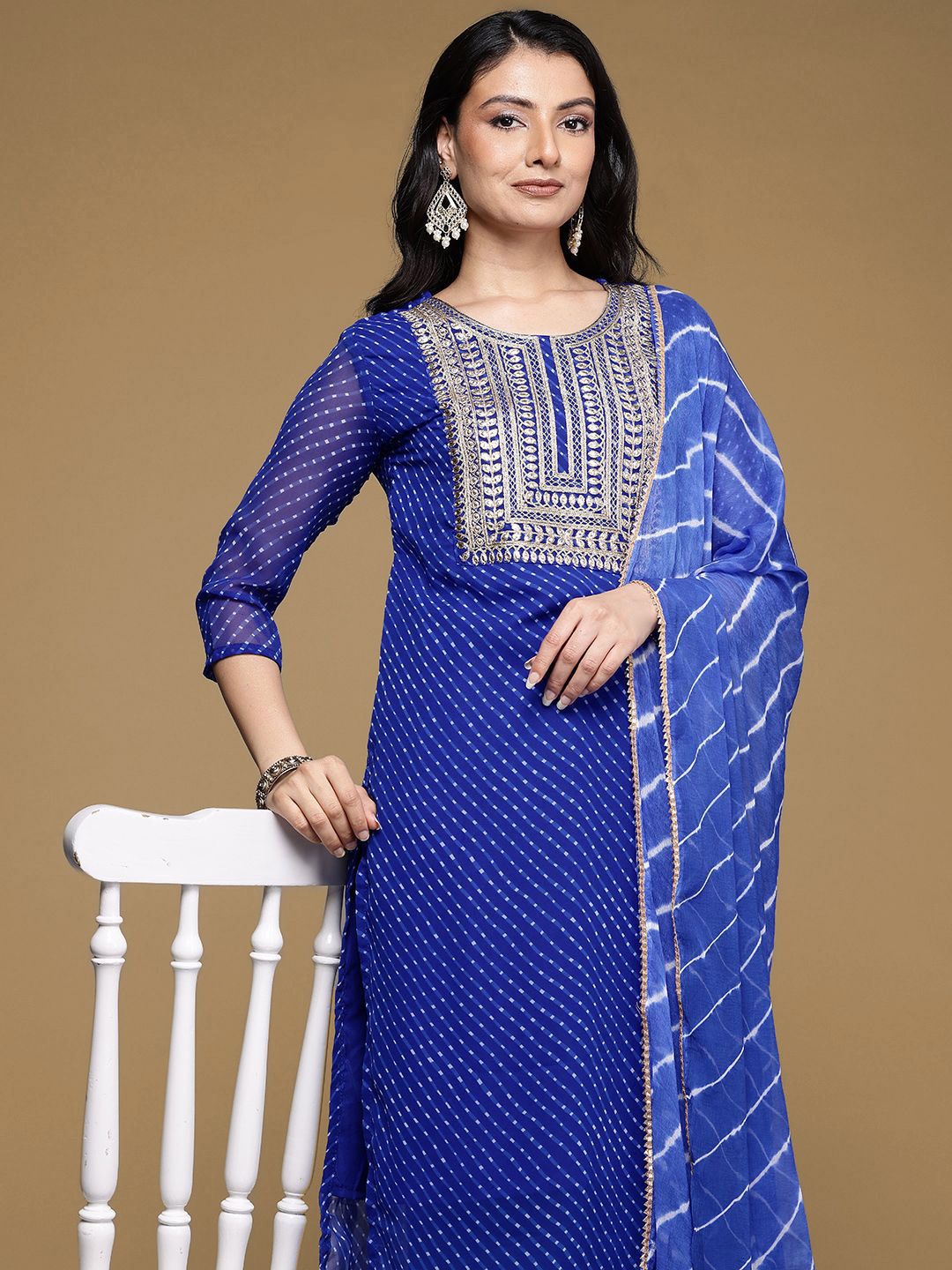 House of Pataudi Zari Embroidered Straight Kurta With Trouser & Dupatta