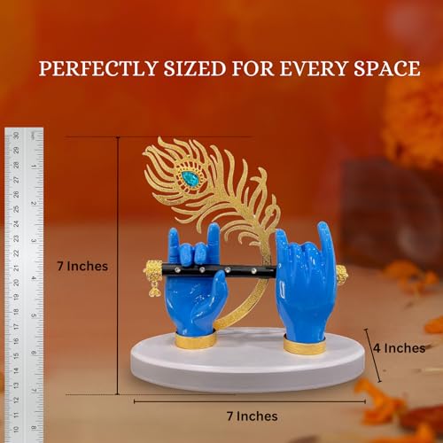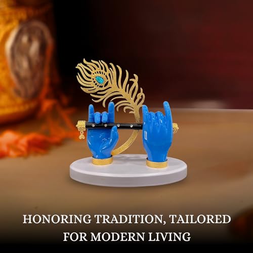 Elegant Home Decor: This Gold Plated Krishna Hands Statue with a flute and peacock feather is an exquisite addition to your home decor, bringing a touch of divine beauty to your living room, pooja room, or showcase. Perfect for Special Ceremonies: Ideal for housewarming ceremonies, weddings, or Guru Purnima, this Krishna statue symbolizes divine blessings and makes a thoughtful and meaningful gift. Intricate Craftsmanship: Crafted with meticulous attention to detail, this small-sized statue showcases Krishna’s divine hands playing the flute, adorned with a peacock feather, making it a captivating piece for any space. Versatile Decorative Piece: Whether placed on a TV panel, office desk, or as a centerpiece in your pooja room, this Krishna statue adds a touch of spiritual elegance to any setting. Thoughtful Gift for Devotees: A heartfelt gift for devotees, couples, or loved ones on special occasions, this Krishna statue embodies devotion and is perfect for housewarming, weddings, or Upanayanam functions.