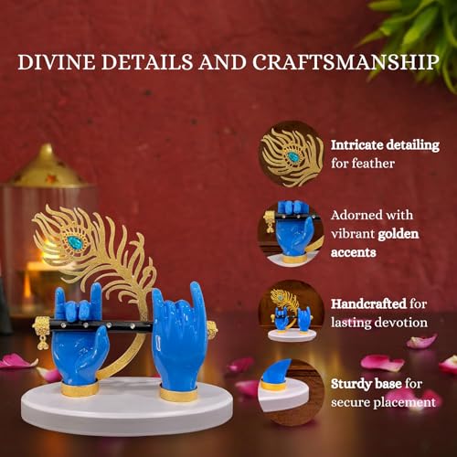 House Of Wemy Gold Plated Lord Krishna Hands Idol with Flute and Peacock Feather | Gift for House Warming Ceremony | Statue for Home Décor & Office Table - 7 Inches (Blue) - Pack of 1