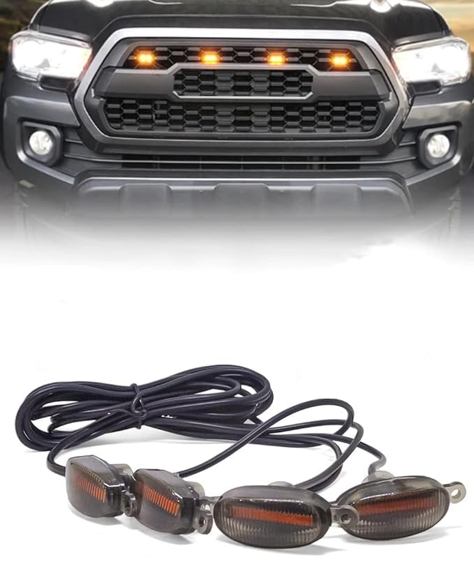 Type of Lights: LED Front Grill Lights Material: Smoked ABS Lens & Durable Black ABS Housing Universal model,Direct replacement for most cars.This universal model may need to be punched during installation. Powered with super bright amber LED lights inside for front grill lamps Great way to upgrade your cars with better lighting capabilities
