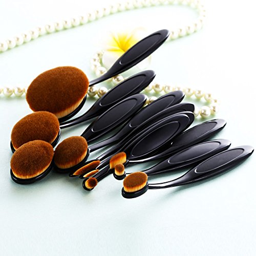 Imported 10pcs Black Toothbrush Curve Makeup Tool Oval Foundation Brush