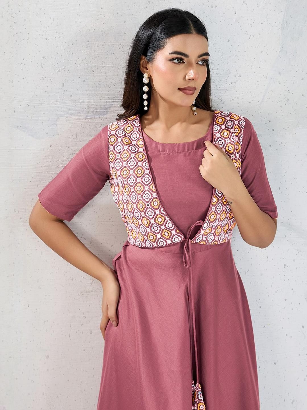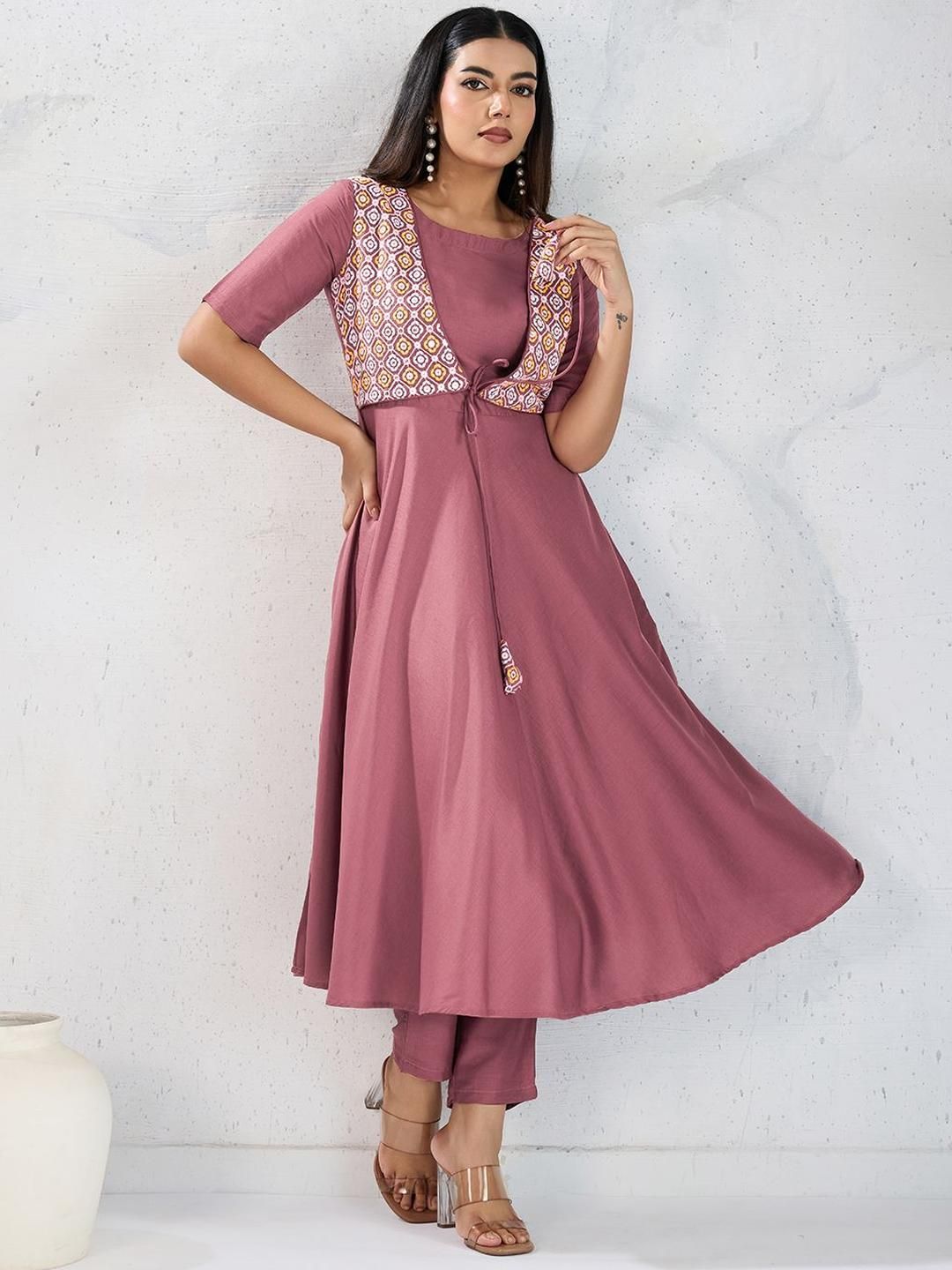 Inddus Ethnic Motifs Embroidered A Line Thread Work Kurta With Trousers