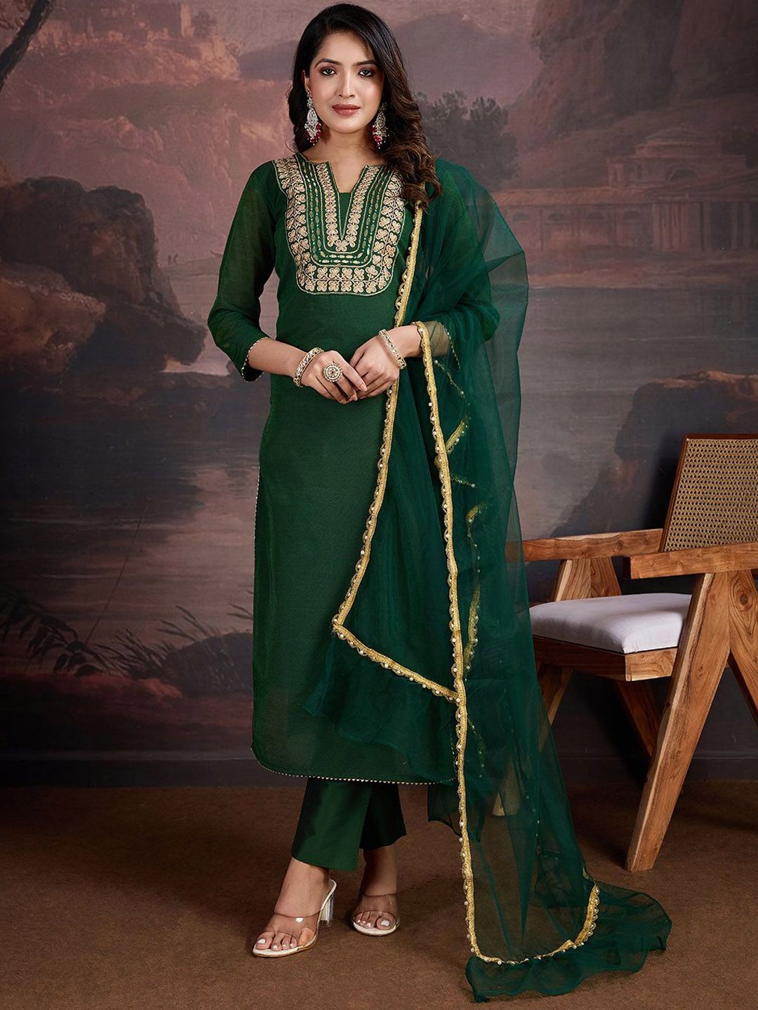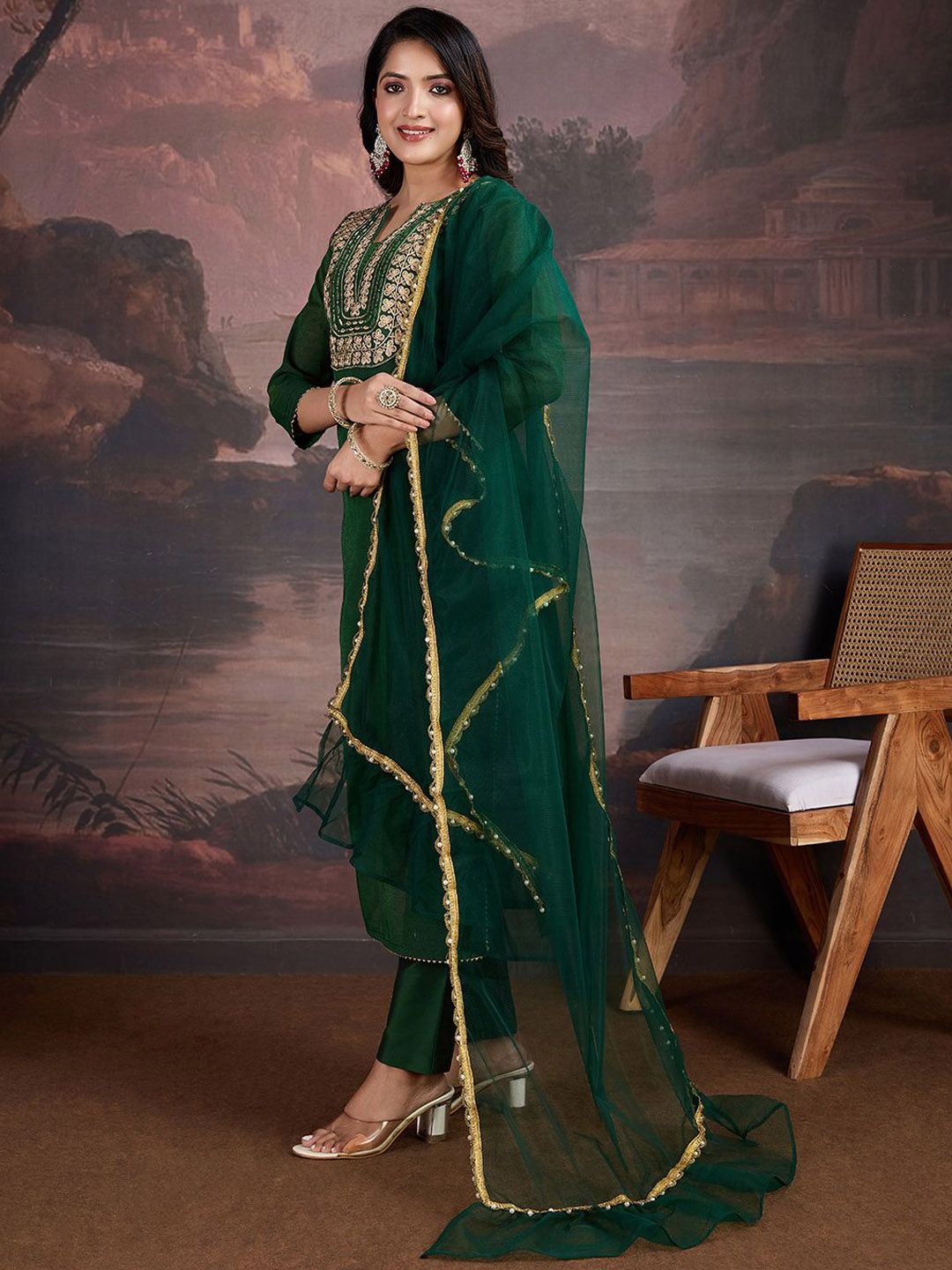 Inddus Women Ethnic Motifs Embroidered Kurta with Trouser & Dupatta